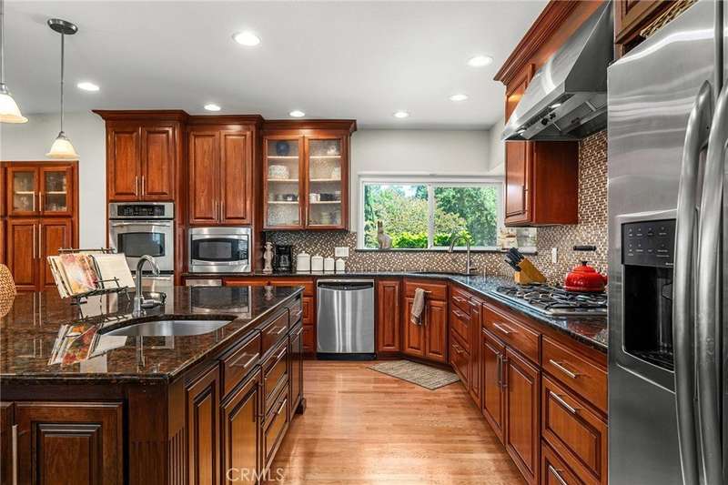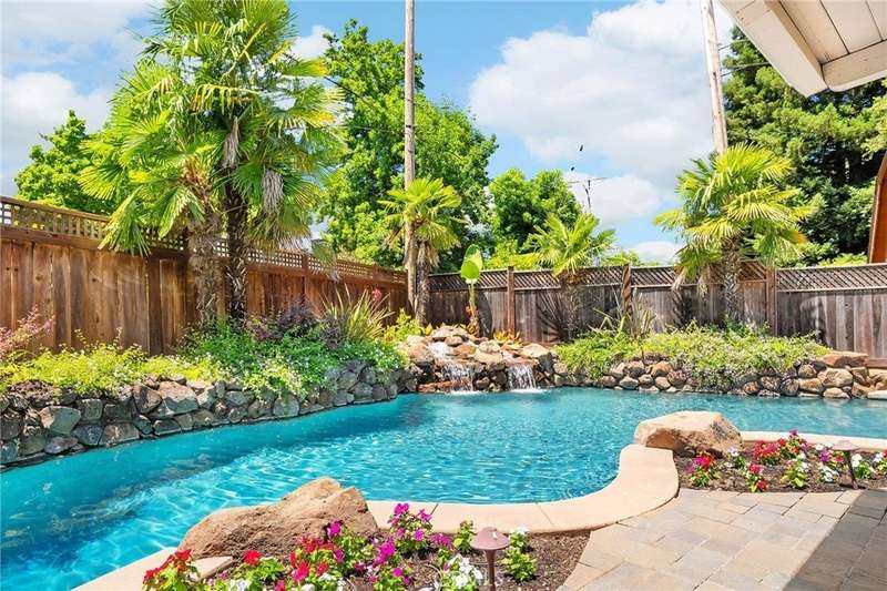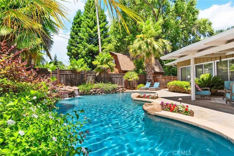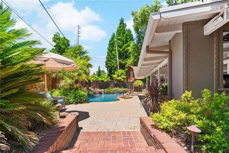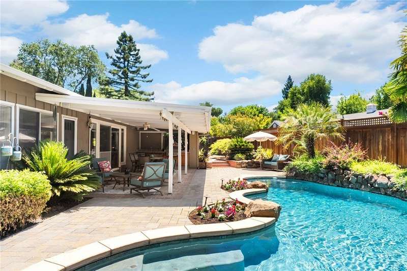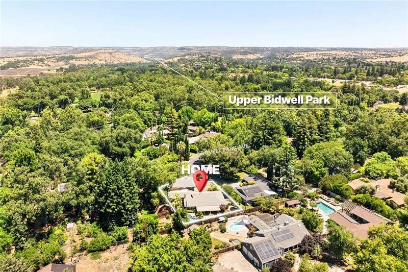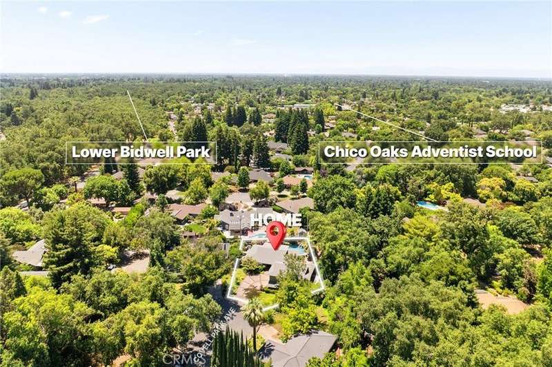 Incredible Home Across from Bidwell Park! Located on a quiet cul-de-sac across the street from Bidwell Park and Big Chico Creek, this stunning home sits on a beautifully landscaped, oversized lot and offers 4,146 square feet of versatile living space. Step inside through the elegant brick entry and double doors to find gorgeous hardwood floors that flow into the formal dining area and spacious family room, complete with a cozy fireplace. French doors off this room lead to both a bright living area and a charming sunroom—perfect as a workout space, reading room, or creative studio. The heart of the home is the expansive, open-concept kitchen featuring a large center island, double ovens, stainless steel appliances, granite countertops, and an abundance of rich cabinetry—ideal for entertaining or everyday living. Designed with flexibility in mind, the home features four bedrooms, four bathrooms, plus a dedicated office and a huge laundry/mudroom. Privately situated on one side of the home is a large guest room, guest bathroom and the primary suite that features a luxurious en-suite bathroom. On the other side, you'll find two more bedrooms, two bathrooms, and the office that leads to a bonus upstairs area—three spacious rooms that can be used as additional bedrooms, a recreation room, guest suite, or anything you envision. Step outside and enjoy the incredible backyard oasis, complete with a sparkling pool, tranquil waterfall feature, lush flowerbeds, a built-in BBQ area, and a covered patio perfect for outdoor dining and relaxation. Thoughtful additions throughout the home—including built-in desks, linen closets, custom drawers, window seats, crown molding, French doors, and an abundance of windows that flood the home with natural light—make this property truly one of a kind. This home combines size, location, and timeless design in one of Chico’s most sought-after neighborhoods. A rare opportunity—don’t miss it!