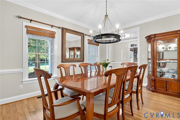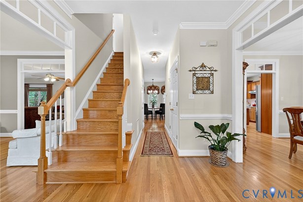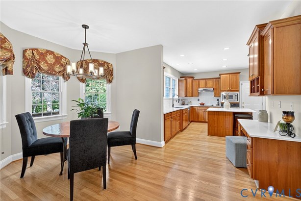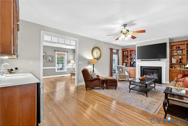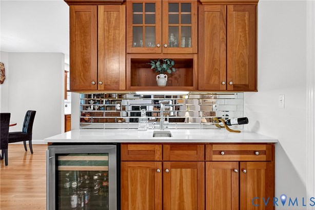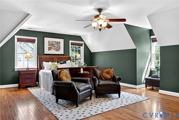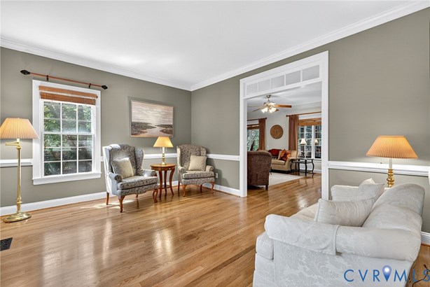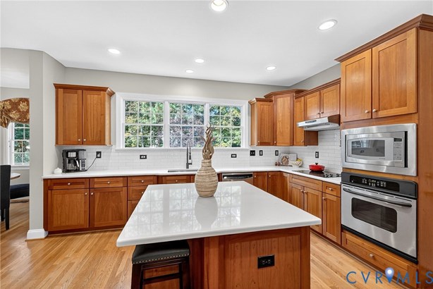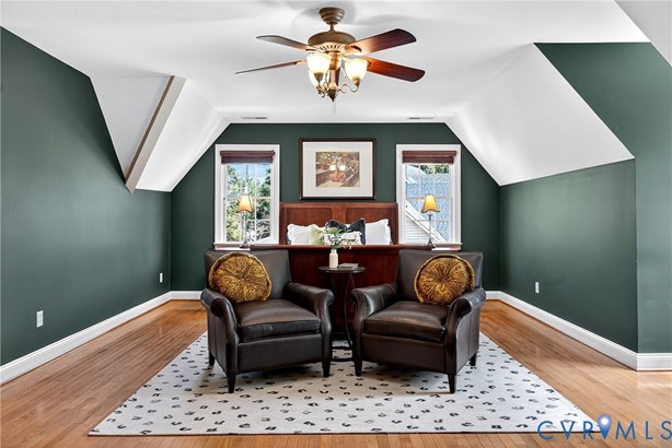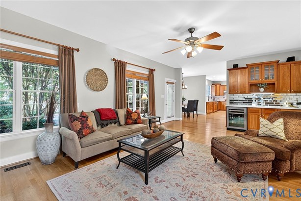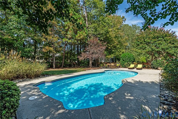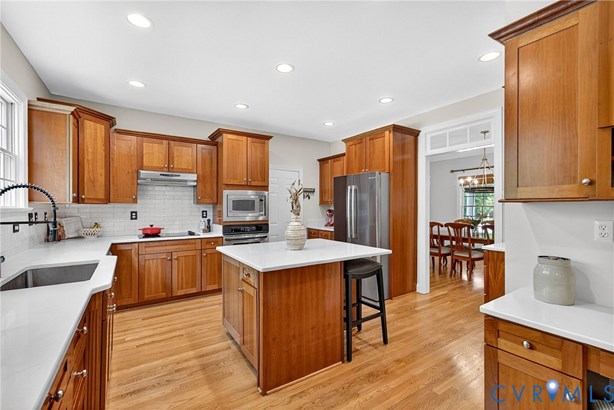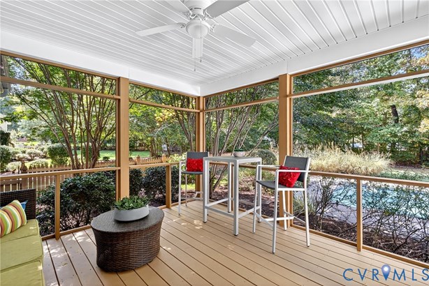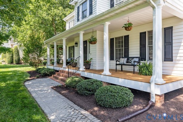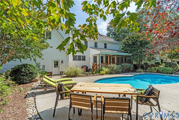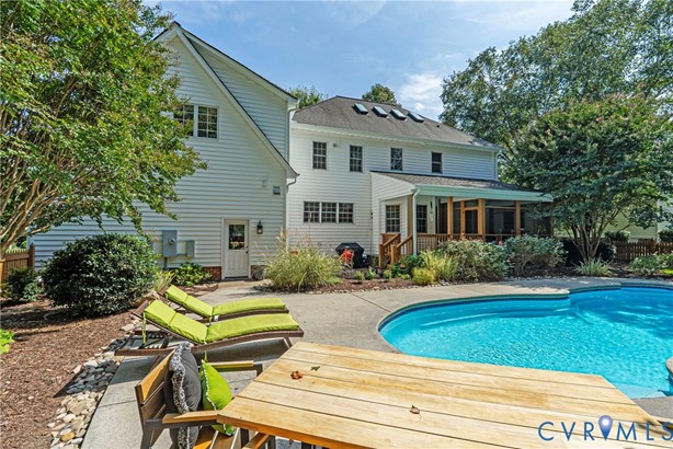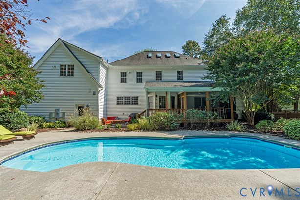 Discover this rare white farmhouse in the coveted King’s Farm section of Riverdowns. On a peaceful, wooded half-acre, this Ridgeline custom home blends timeless character with modern luxury and features a sparkling pool for effortless entertaining. The charm begins with an inviting full front porch, leading inside to hardwood floors, elegant transoms & millwork, and designer lighting. Formal spaces include a gracious dining room and conversation area (or home office) that opens to the living room with fireplace, built-ins, and a custom wet bar with beverage fridge, new backsplash & new sink. Renovated in 2024, the chef’s kitchen shines with cherry cabinetry, quartz countertops, ceramic backsplash, and touchless faucet. Dinner prep is made easy with the spacious island, built-in oven/microwave, glass cooktop and walk-in pantry. The luxury continues upstairs with hardwood floors; ceramic tile and Venetian marble in all baths and an expansive primary bedroom retreat. The spa-like bath features both a soaking tub, separate shower as well as a customized walk-in closet. A second primary suite offers its own private bath and walk-in closet, ideal for multi-generational living or long-term guests. Two additional guest bedrooms share a well-appointed hall bath, while the convenient upstairs laundry room with ample workspace, is designed to make daily living a breeze! The 3rd floor haven complete with skylights, is the perfect hangout for all ages when not living your best life in the backyard. Outdoors, everyday is a getaway! Imagine dinners by candlelight on the screen porch, grilling on the patio or relaxing poolside! Meticulously maintained by the original owner: new gutters 2024, driveway/sidewalk pavers re-sealed 2025. Front porch, back deck and fence stained 2025. Ideally situated just steps from schools, dining, fitness centers and spas as well as and the James River and its trail system, this home has the ultimate lifestyle.