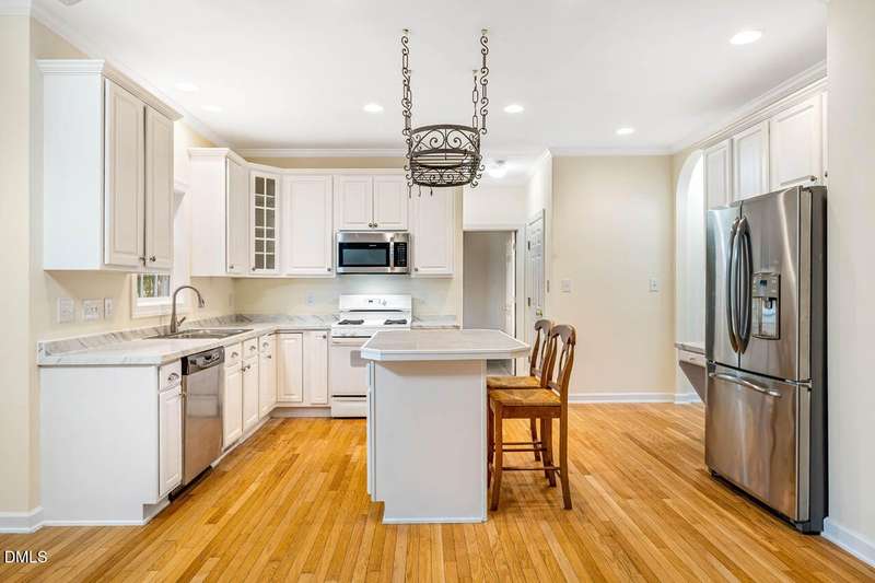 AMAZING CHAPEL HILL LOCATION! Beautiful transitional home on a quiet cul-de-sac in sought-after Northwood! This move-in ready 4-bedroom plus bonus (optional 5th bedroom), 3-full bath residence offers a spacious, light-filled layout with hardwood floors and numerous updates. The renovated kitchen features updated countertops, a center island, gas range, and a breakfast area that opens to the family room with gas fireplace. Enjoy a formal dining room and a flexible home office/living room. A first-floor bedroom with full bath is perfect for guests or multi-generational living. The primary suite boasts a tray ceiling, walk-in closet, dual vanities, soaking tub, and separate shower. Upstairs also includes secondary bedrooms, a bonus room, and walk-in storage. Relax on the screened porch and deck overlooking a private, level, half-acre lot with wooded views. Convenient to I-40, shopping, and dining, with top-rated Chapel Hill-Carrboro schools. Truly move-in ready!