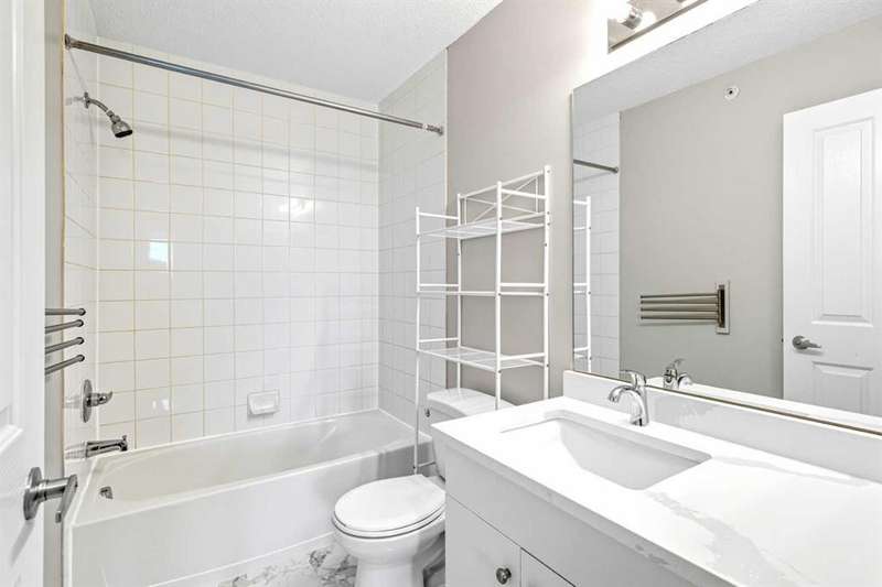 Top-floor living in Taradale! This fully renovated 2-bedroom, 2-bathroom condo features high ceilings, a sunny living room, and a private balcony with beautiful west-facing mountain and city views. Enjoy a brand-new U-shaped kitchen with never-used appliances, plenty of counter space, and a breakfast bar. The primary bedroom includes a walk-through closet and 4-piece ensuite, while the second bedroom works perfectly for guests or a home office. Plus, you’ll love the convenience of in-suite laundry, a storage locker, and two outdoor parking stalls. Condo fees include heat, electricity, water, and professional management. Located steps from the Saddletown LRT, schools, shopping, and restaurants—this is an incredible opportunity you won’t want to miss!
