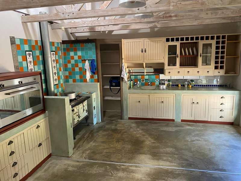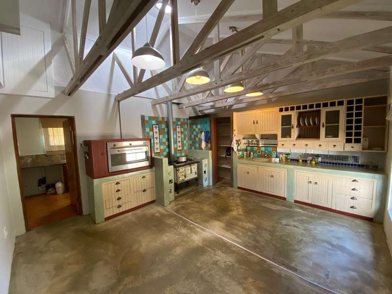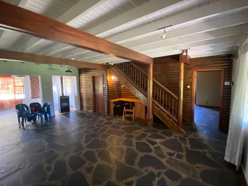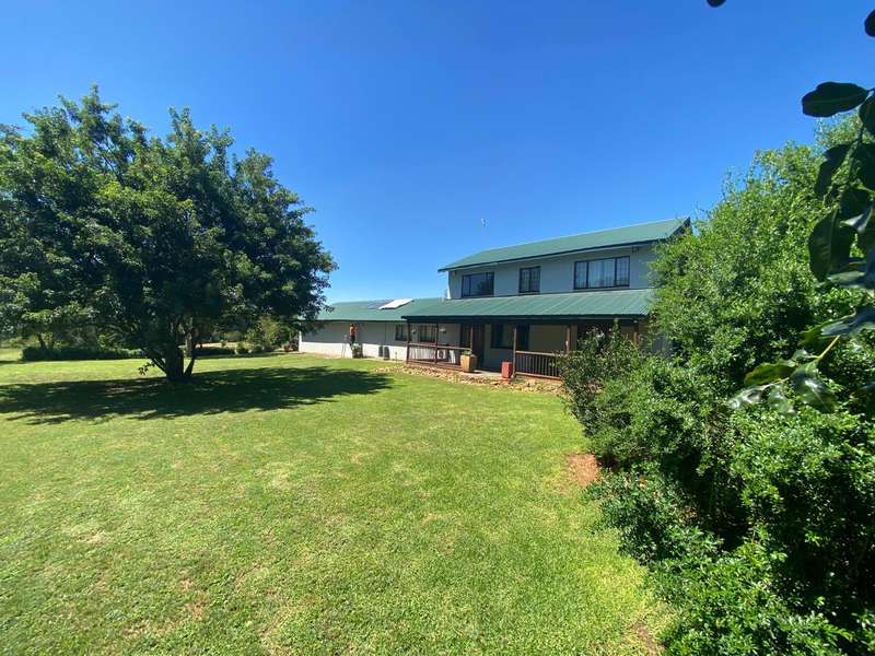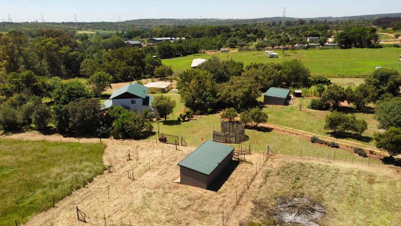 This charming home offers a spacious open-plan living area that seamlessly flows into an enclosed entertainment space featuring a built-in braai. A cozy wood-burning slow combustion stove enhances the warmth of the main living area. The beautifully maintained garden boasts two water features, along with an array of stunning plants and trees. Designed for partial off-grid living, the property is equipped with solar panels, an inverter, and a solar geyser system. Security is a priority, with a fully integrated alarm system, and armed response services available in the area. The farm-style kitchen is both functional and inviting, featuring a concealed pantry and a gas stove. A generously sized scullery/laundry area extends from the kitchen for added convenience. On the ground floor, the spacious main bedroom includes a full en-suite bathroom. A striking wooden staircase leads to three additional bedrooms upstairs. The largest of these also has an en-suite bathroom, while the other two share a separate full bathroom. The property includes multiple garages and a dedicated workshop space within the main building. Additional outbuildings provide housing for livestock, storage rooms, and staff quarters. A greenhouse, irrigation system, and a 2,000-litre water tank are in place. The plot has a history of supporting both crops and livestock, with a strong borehole providing a reliable water source. Zoned as ‘farm,’ it is fully fenced, with fertile soil containing minimal clay. Contact me to arrange a viewing!