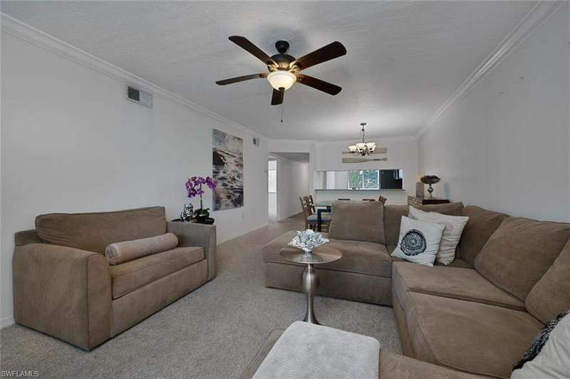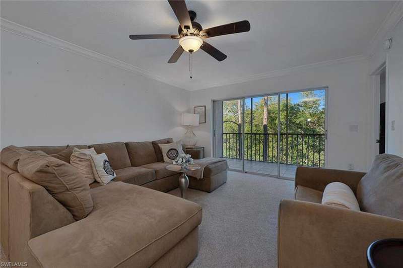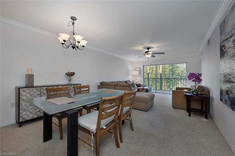 Welcome to your serene escape available for this season! This bright and airy 2-bedroom, 2-bath condominium, ideally located on the second floor captures beautiful views of lush tropical landscaping. This inviting residence offers an open and versatile layout perfect for comfortable living and entertaining during your stay in paradise. Step into a sunlit living area featuring neutral tones and seamless flow throughout. The modern kitchen boasts stainless steel appliances, pristine white cabinetry, and granite countertops-ideal for cooking or enjoying casual meals in the cozy eat-in space surrounded by natural light. The spacious master suite offers a peaceful retreat with a walk-in closet and refined crown molding details, while the guest bedroom ensures comfort and privacy for family or visitors. Both bathrooms and the kitchen feature stylish tile flooring, combining elegance with easy maintenance. Relax on the screened-in balcony, the perfect spot for morning coffee or evening unwinding as you take in the tranquil scenery. Tenants enjoy access to a sparkling community pool, boat dock, and community clubhouse-plus BBQ and picnic areas for those perfect Florida afternoons.Whether you're seeking a seasonal getaway or a long-term rental, this beautifully maintained condo offers the ultimate Naples lifestyle-where leisure, comfort, and convenience meet.