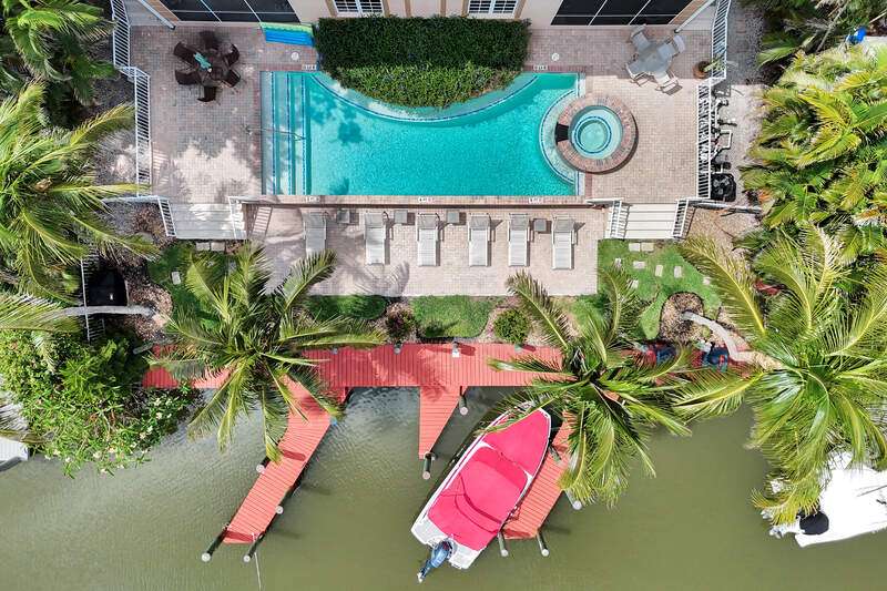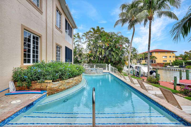 El Nido is a small enclave of four condominiums in the Royal Harbor area with direct Gulf access from your deeded boat dock. Just minutes from downtown Naples and the Gulf beaches. Spacious 2+den with volume & tray ceilings. Tile flooring throughout with Plantation Shutters on the windows. Both bedrooms have large walk-in closets, with the primary ensuite having both a soaking tub and separate shower. This community has a large pool and hot tub surrounded by brick pavers, and a sun deck that leads out to your boat dock. Building updates include a new roof in 2022, pool and pool deck in 2023, and the exterior painted in 2024.