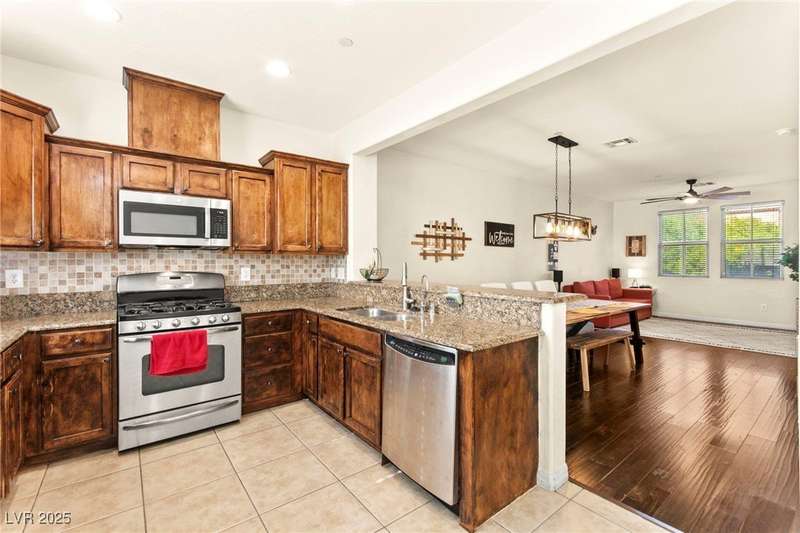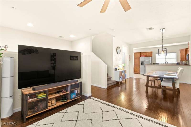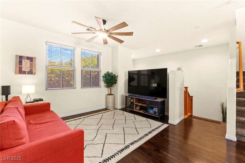 Located in a gated community with resort-style amenities, this well-maintained very clean townhome offers 3 bedrooms and 3 bathrooms across a functional layout. The open-concept main level features a spacious living area with wood-style flooring, a dedicated dining space, and a kitchen equipped with granite counters, stainless steel appliances, and ample cabinetry. Upstairs, the primary suite includes a large walk-in closet and a bathroom with dual sinks, a soaking tub, and a separate shower. Additional highlights include an attached two-car garage, private balcony, and lower-level flex space ideal for an office or den. Residents enjoy access to community amenities such as a fitness center, pool, clubhouse, and playgrounds. Conveniently located near shopping, dining, and freeway access, this townhome combines comfort, functionality, and a prime location within a secure, amenity-rich neighborhood.