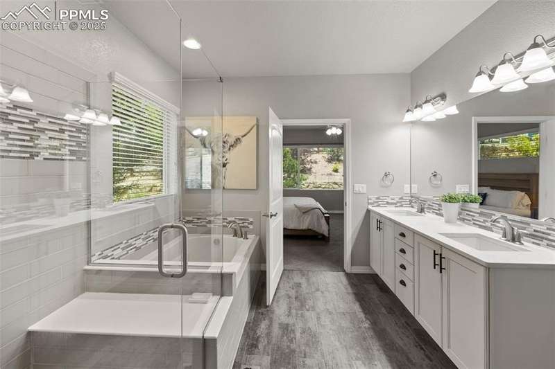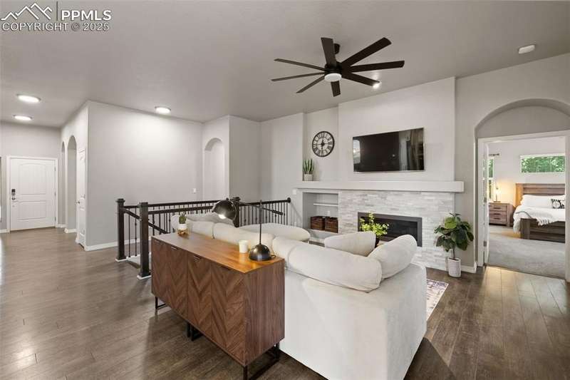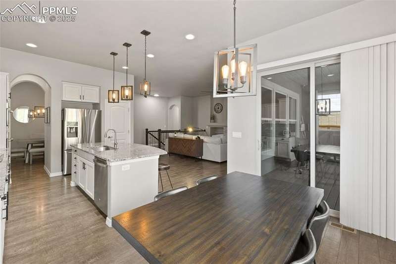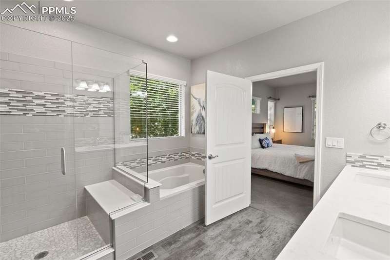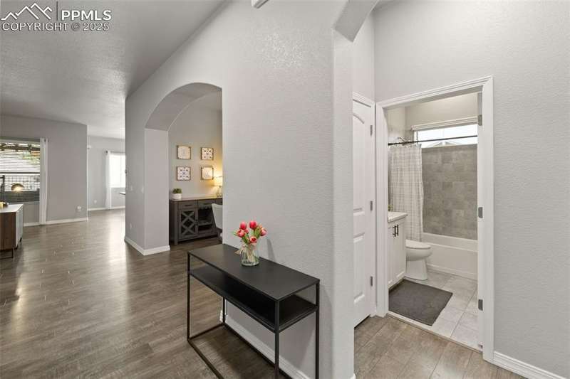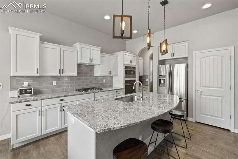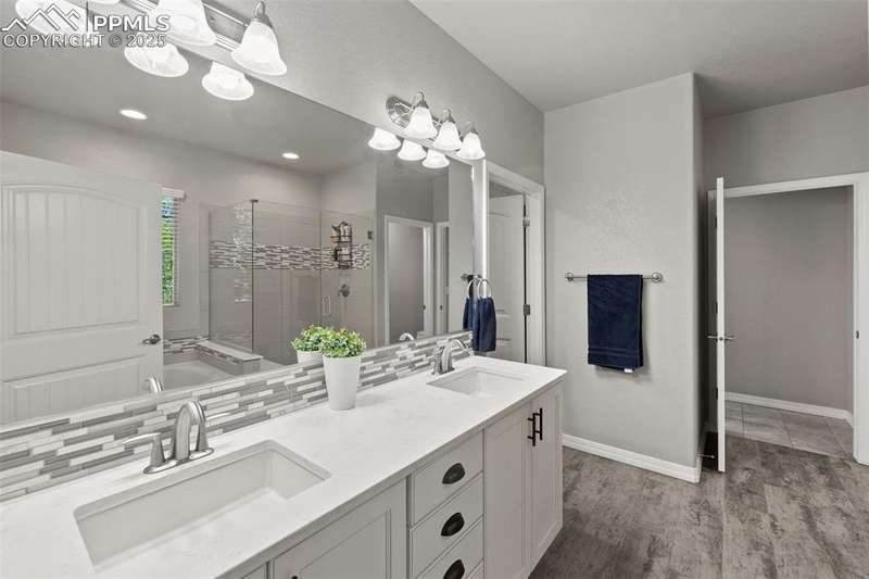 Luxury, lifestyle, and location converge in this stunning ranch-style masterpiece tucked within the prestigious Forest Lakes community. Perfectly positioned just steps from shimmering private lakes, miles of meandering trails, and serene open space, this residence offers a front-row seat to Colorado’s most coveted outdoor experiences—kayaking, paddleboarding, fishing, hiking, and community parks/concerts are all at your fingertips. From the moment you arrive, timeless sophistication and thoughtful design shine through. Inside, the open-concept layout is anchored by soaring ceilings, expansive windows that frame the natural beauty outside, and rich hardwood floors that flow throughout the main level. The gourmet kitchen is a chef’s dream, boasting granite countertops, stainless steel appliances, double ovens, a gas cooktop, soft-close cabinetry, and an oversized island. A stylish butler’s pantry adds both function and finesse. The great room is warm and welcoming, featuring a cozy gas fireplace and custom built-ins, seamlessly connected to an elegant dining area that opens to a covered composite deck—complete with roof heaters, so you never have to clear snow—ideal for year-round entertaining. Main-level primary suite offers a peaceful escape. JR suite, home office or flex room, and formal dining room on the thoughtfully designed main floor. Downstairs, the lower level expands your living space with a spacious rec room, wet bar, 2 additional bedrooms, full bath, and plenty of storage. Step outside to your personal oasis—lush landscaping and a private hot tub! A community known for its scenic 65-acre lake, rolling hills, and resort-style amenities, this home offers more than just a place to live—it delivers a lifestyle of tranquility, recreation, and elevated comfort. Quick access to I-25, top-ranked District 38 schools, and breathtaking mountain views, this is Forest Lakes living at its absolute finest.