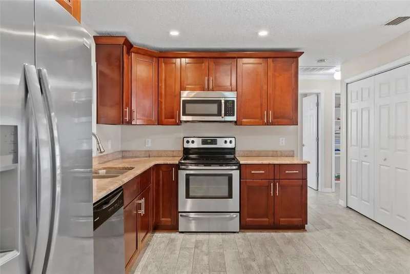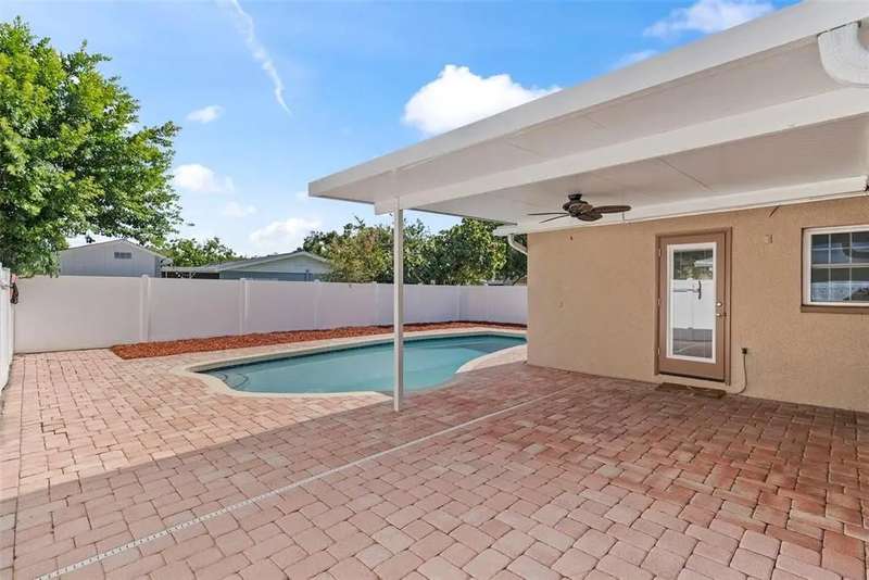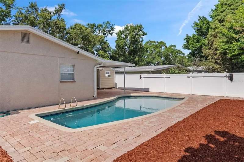 This Corner Lot in S. Tampa offeres the best of both worlds. It can provide an amazing opportunity to build the home of your dreams or allow a new owner the advantage of all of the improvements made to this property, including the wonderful backyard Pool, and entertaining space. Upon entering the home you will find a fully remodeled kitchen with granite countertops and space for a living room/dining room combo. The split floorplan is perfect with the primary bedroom including an ensuite bath. The many improvements in this home include wood grain look tile floors throughout the home, painting with crown molding, ceiling fans, newer roof, new AC, ductwork and insulation, newer appliances including washer and dryer, refinished inground pool, new pump with Hayward salt system. The pool is heated with newer solar panels. The pool and covered lanai are surrounded with pavers throughout. This area was made for rest and relaxation as well as backyard entertaining. Don't miss out on seeing this South Tampa gem.