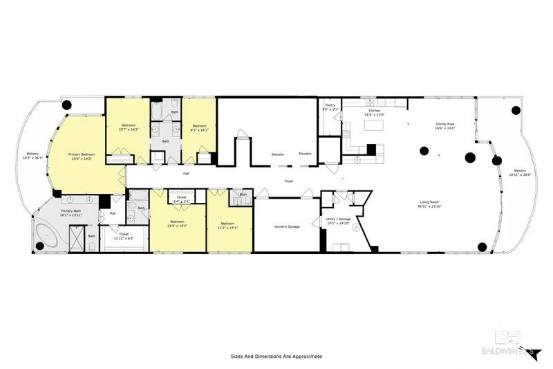 Looking for a Great Investment Property/1031 Exchange, New Primary Residence or A Second Home For Weekend Get Away? Welcome to Lagoon Tower Penthouse 16 located on West Beach in Gulf Shores, AL. This fully furnished property offers luxurious living with breathtaking views of the Gulf of America and Little Lagoon. Youll love the open concept living the minute you walk out one of the two private elevators to access the unit. PH 16 features 5 Bedrooms, 3.5 baths, 3,746 SF+/-. Enjoy sunsets & sunrises from the floor to ceiling windows in the kitchen, living room, dining room, and all bedrooms Plus on the 2 oversized balconies with Adirondack chairs. Primary suite is located on the lagoon side of unit with a private balcony and en-suite bathroom with double vanities, jacuzzi tub, walk-in shower, plus a large walk-in closet. Its a retreat in itself! Get ready to cook in the fabulous Gourmet Chef's Kitchen with dining area and an extra island breakfast bar. Special kitchen features include: stainless steel appliances, granite countertops, abundant wood cabinetry, walk in pantry, and a wet bar area with ice maker and wine cooler. The 3811 x 2310 living room is perfect space to watch tv, play pool, relax, or read a book after a day at the beach. This unit has plenty of room for entertaining family and friends. Additional amenities include: Hallway half bath for guests, oversized laundry room, plenty of storage, secure entry, fitness center, outdoor pool and indoor pools with spa, fishing pier, first come first serve boat slips, BBQ area and most importantly DEEDED BEACH ACCESS. Lagoon Tower is one of the few low density (32 units) upscale West Beach condos available. Penthouse 16 is a Must See! Located approximately 3 miles from the heart of Gulf Shores - conveniently located to restaurants, entertainment and shopping. Buyer responsible for verifying all measurements and relevant details. Buyer to verify all information during due diligence.