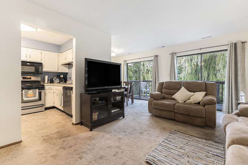 Home Sweet Home! This Spacious 2 Bed 1 Bath 1 Car Garage 2nd floor Maintenance FREE Condo with POND Views is a MUST SEE! From the moment you walk in you will love the natural lighting, spacious living room with nice views of the pond from multiple rooms. The kitchen offers a lot of cabinet and counter space with a breakfast bar and stainless-steel appliances (which stay). The formal dining room is great for entertaining, plus there is a nice balcony off the dining room with perfect picture views of the pond. The Main bedroom is spacious with a walk-in closet and access to the bathroom. The laundry room also provides additional storage and is a nice feature. Included in the HOA are things like Snow, Lawn, Exterior Maintenance, Water, Trash, Sewer and More! THIS HOME IS PRICED TO SELL so SCHEDULE YOUR SHOWINGS TODAY!