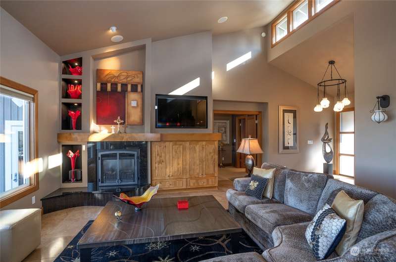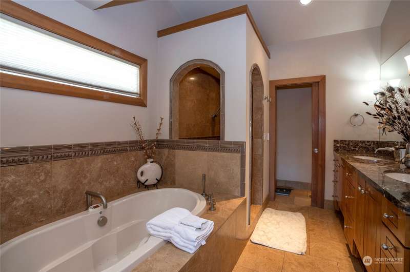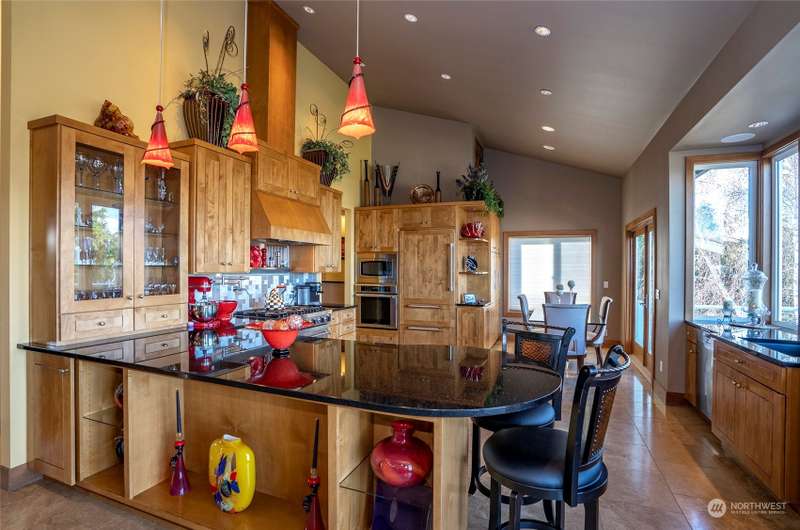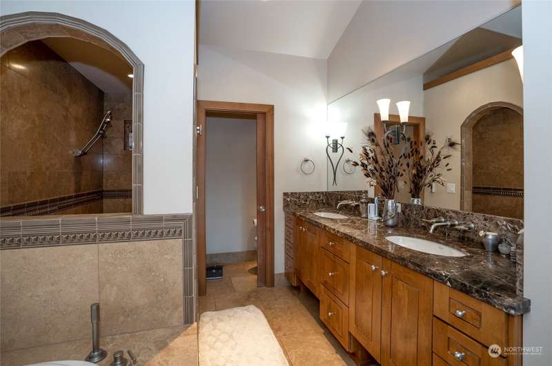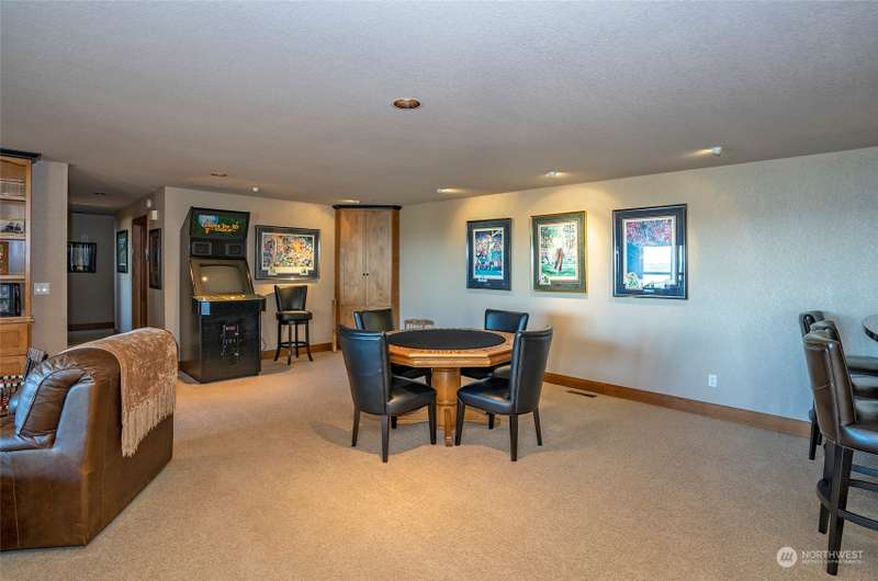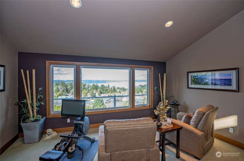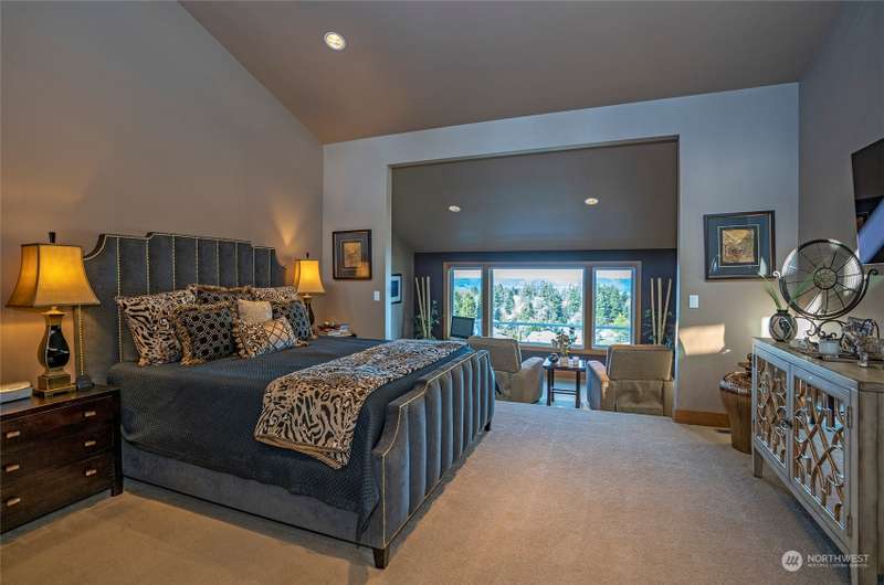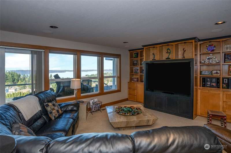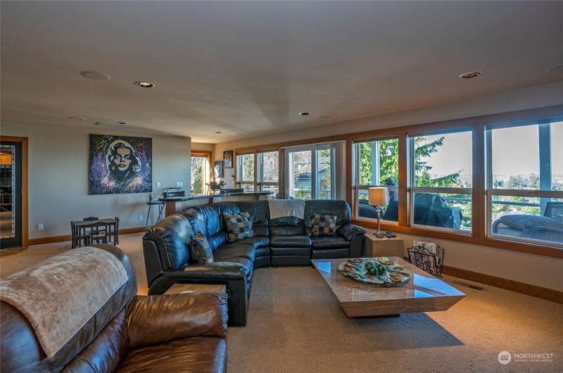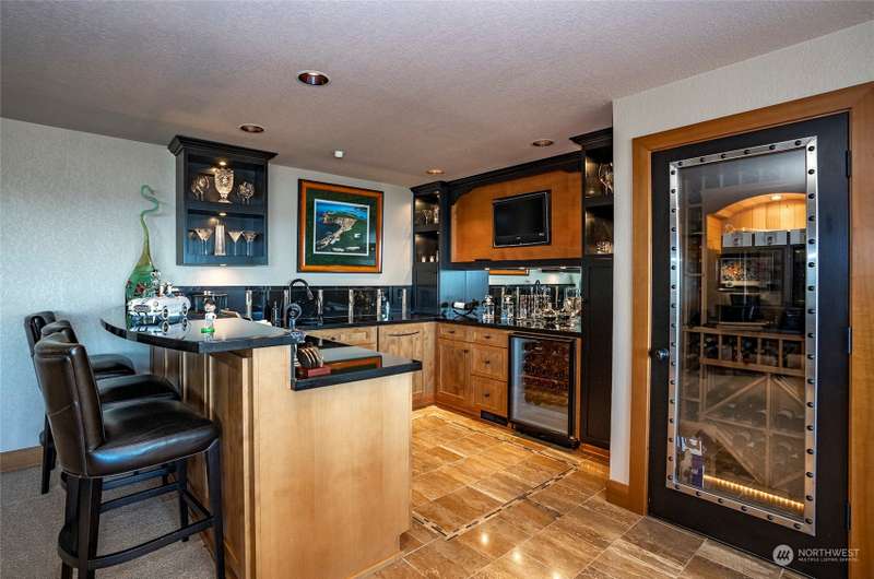 Astounding views up Puget Sound toward Seattle, perched over a pool-house, multiple decks, all-weather sport court and turf putting greens. A rare opportunity for the entertainer's dream home! Complete custom home has it all. Huge ceilings, custom millwork and cabinetry, gourmet open kitchen. An amazing primary suite with sitting room, additional laundry in the primary closet & quick access to a private garage. Upstairs offers great entertainment/dining spaces plus den w/ murphy bed and cabinetry, possible 4th bedroom. Downstairs has game room, bar, wine room, 2 beds, bath & laundry. Pool house has resort pool, hot tub, bath and sauna. Half court sports court for competition basketball/pickleball. Even a shed for the toys! Buyer to verify