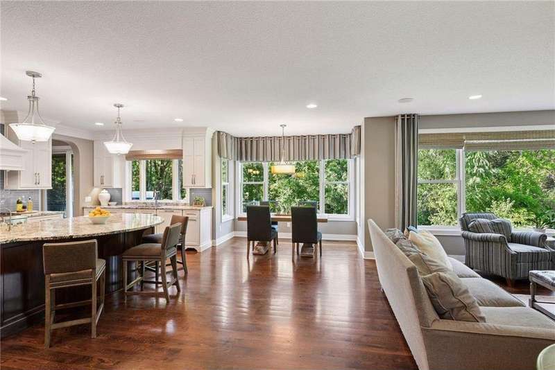 Welcome to this stunning custom-built Wooddale home located in the highly sought-after Wayzata School District, offering a perfect blend of luxury, comfort, and convenience. Featuring a gourmet kitchen, spacious living areas, and a screened porch, this home is designed for both everyday living and elegant entertaining. The beautifully landscaped private backyard includes a maintenance-free deck, a walk-out level patio with built-in fire pit and serene outdoor spaces ideal for relaxing or hosting guests. Additional highlights include an expansive bonus room, large wet bar in the lower level, a heated 3-car garage with epoxy floors and an EV charger, smart home lighting and sound system throughout the interior and exterior of the home and 3-zone heating. This exceptional property offers everything you need to enjoy upscale living in a prime location that is convenient to freeways, shopping, parks and trails.