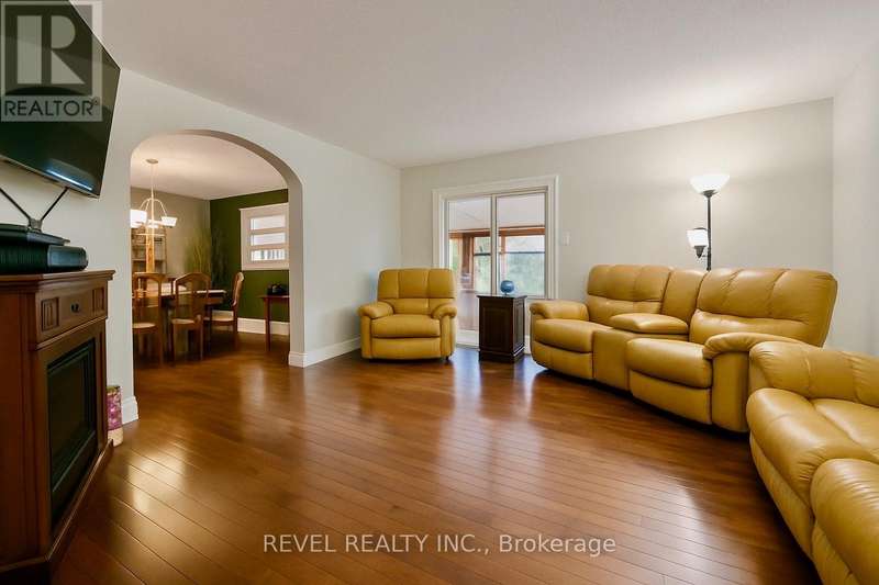 Impressive 3300 sq. ft. bungalow featuring 3+1 bedrooms, 2.5-bath home set on 75.63 acres of beautifully maintained land with scenic trails to explore nature at its best. Features an attached 24' x 24' heated garage with an 18' x 9' overhead door. The open-concept kitchen and dining area include maple cabinets with crown molding, light valance, walk-in pantry, and an island with a breakfast counter. The main floor offers 3 spacious bedrooms, including a primary suite with a 4-piece ensuite and walk-in closet, formal dining, plus convenient main floor laundry combined with a 4-piece bath. The basement boasts radiant in-floor heating, an additional bedroom, office and a massive rec room. Enjoy the 4-season sunroom or the deck offering panoramic views of the backyard. Additional features include central air, central vac, outdoor wood-burning boiler with electric backup generator, and extensive yard lighting. Outbuildings include an 8' x 26' wired workshop, 8' x 20' shed, 12' x 24' shed on the 40' x 60' cement pad ready for a future shop. (id:27)