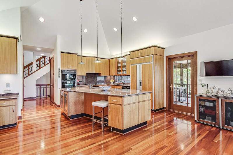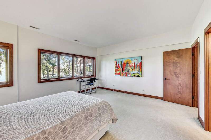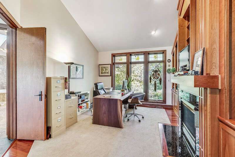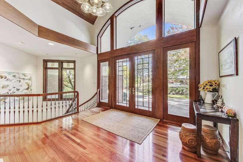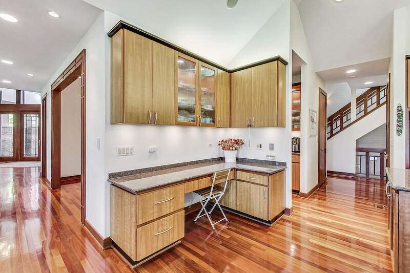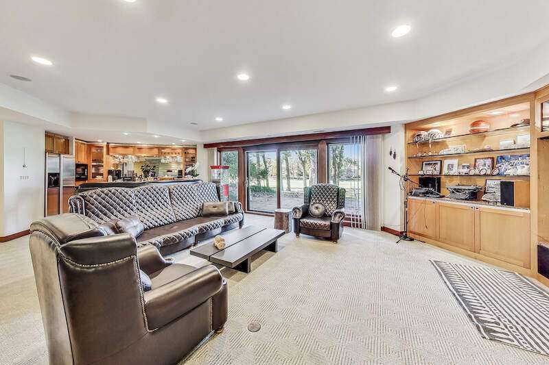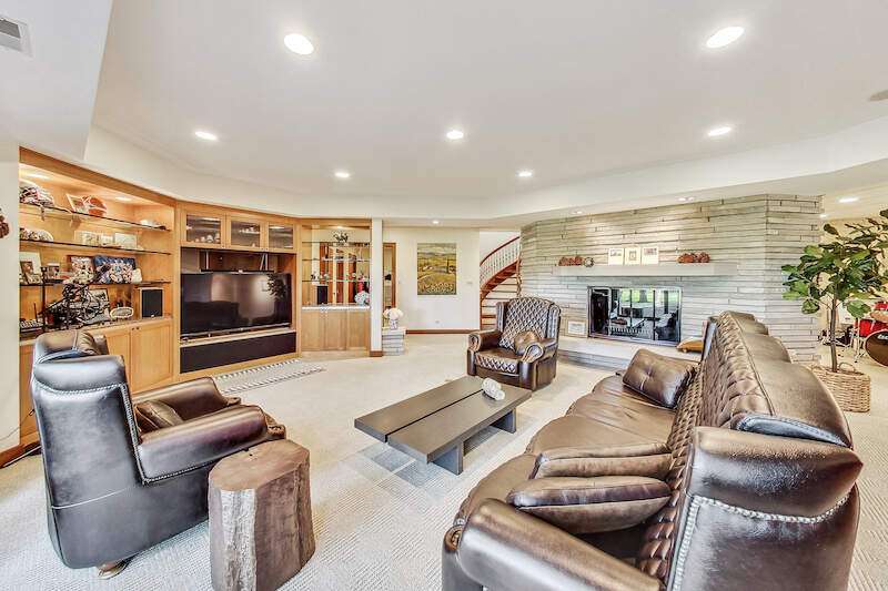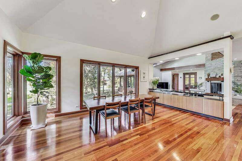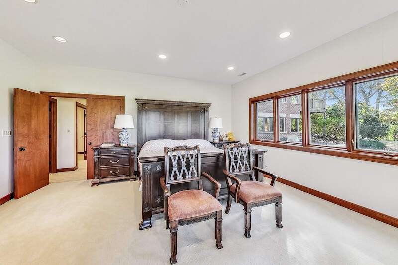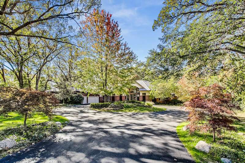 Designed by the talented and highly acclaimed architect, Ron McCormick. Iconic home situated on approximately 1.3 acres and overlooking the sweeping views of 16th fairway of Wynstone Golf Course. For those discriminating buyers desiring the finest of a unique custom built home with features including stone and woods incorporating the gorgeous oaks of outside and the contemporary oasis of the inside. One is welcomed by a dramatic entrance to almost 4000 square feet on the first floor! The layout and style of the home captures every aspect of the property.Ideal home for those seeking multi generational situation or more elegant and private guest space. Expansive primary suite on main level, blend of mid century and Frank Lloyd Wright tones in the kitchen, dining area, and great room with expensive flooring and wood touches. Upstairs provides the perfect guest quarters with living space, bedroom, and separate kitchenette area. The finished walkout emphasizes the openness of the home and highlights the floating staircase. Incredible spaciousness to entertain, enjoy the fine elements of the home, and the impressive property with towering trees. Recent HVAC replaced and one year new roof.