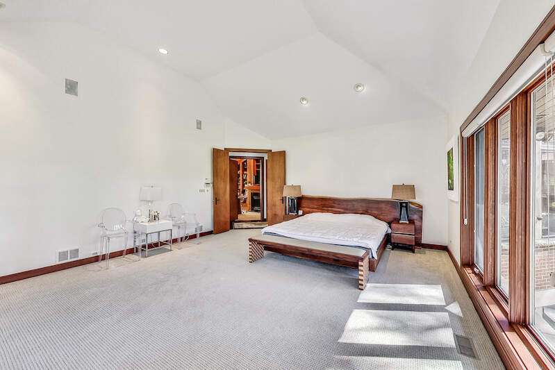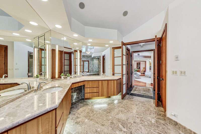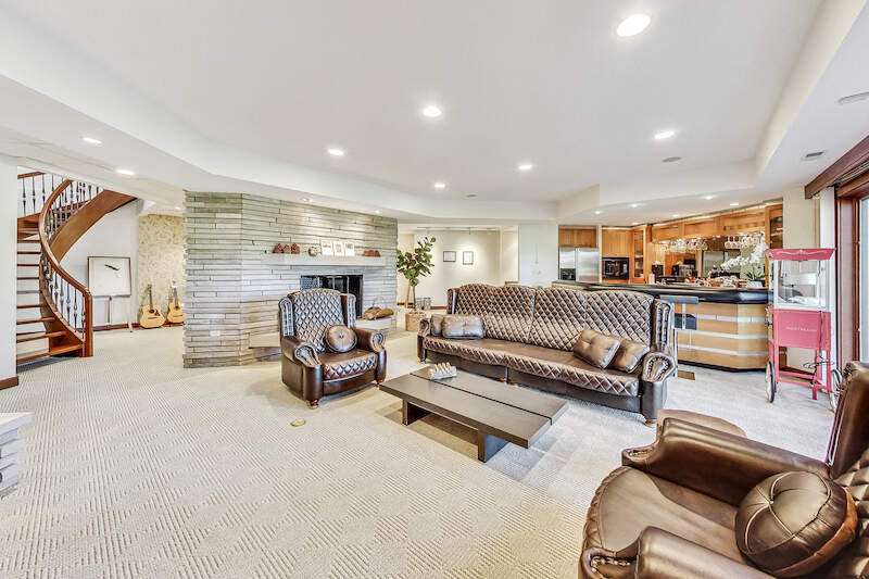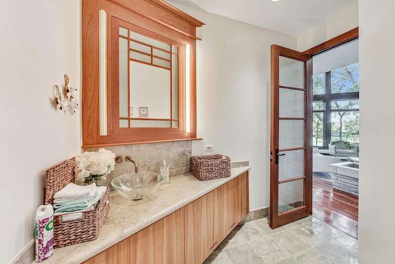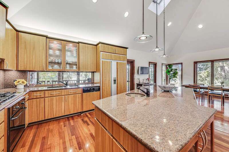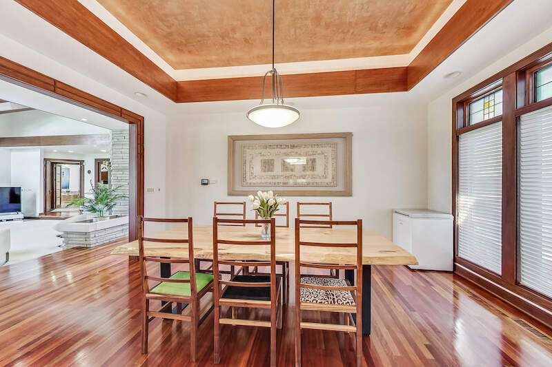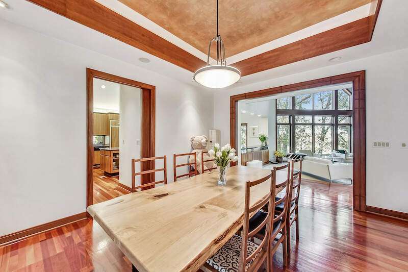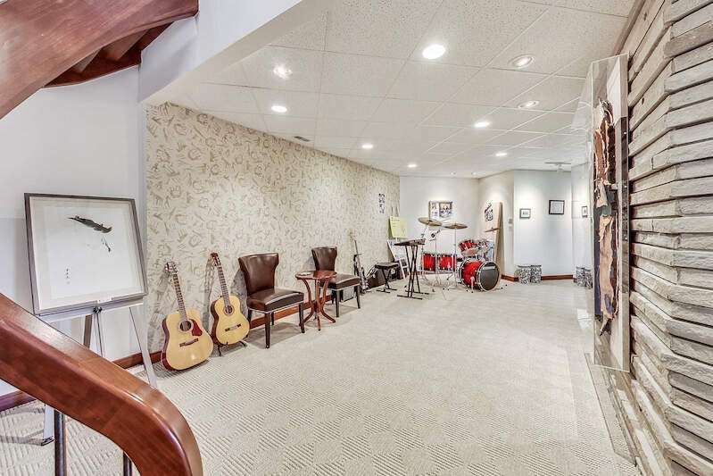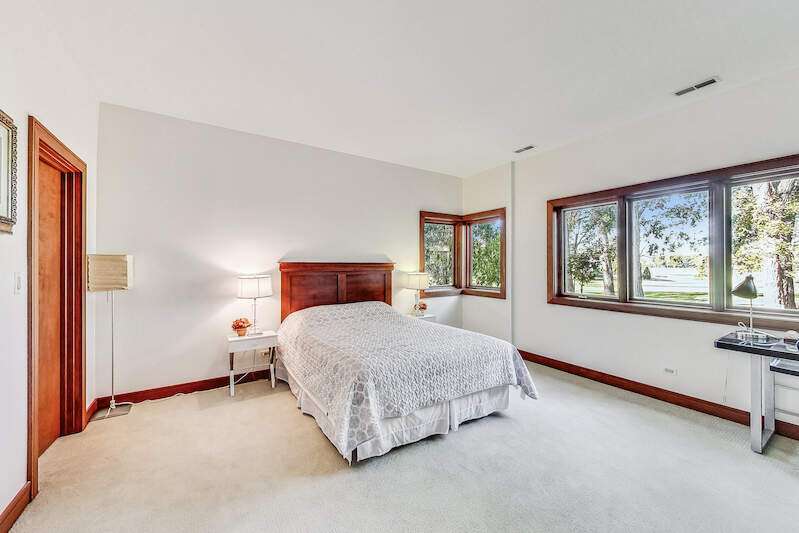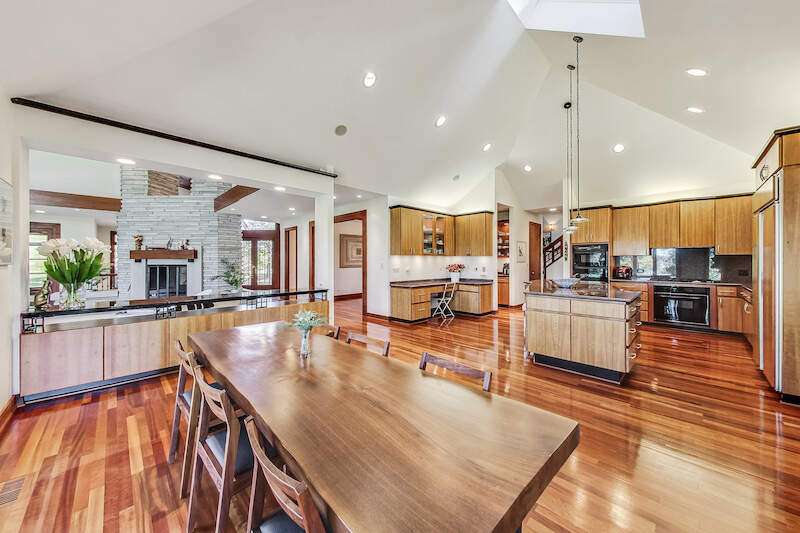 Designed by the talented and highly acclaimed architect, Ron McCormick. Iconic home situated on approximately 1.3 acres and overlooking the sweeping views of 16th fairway of Wynstone Golf Course. For those discriminating buyers desiring the finest of a unique custom built home with features including stone and woods incorporating the gorgeous oaks of outside and the contemporary oasis of the inside. One is welcomed by a dramatic entrance to almost 4000 square feet on the first floor! The layout and style of the home captures every aspect of the property.Ideal home for those seeking multi generational situation or more elegant and private guest space. Expansive primary suite on main level, blend of mid century and Frank Lloyd Wright tones in the kitchen, dining area, and great room with expensive flooring and wood touches. Upstairs provides the perfect guest quarters with living space, bedroom, and separate kitchenette area. The finished walkout emphasizes the openness of the home and highlights the floating staircase. Incredible spaciousness to entertain, enjoy the fine elements of the home, and the impressive property with towering trees. Recent HVAC replaced and one year new roof.