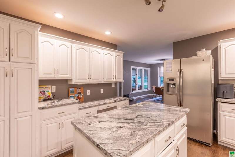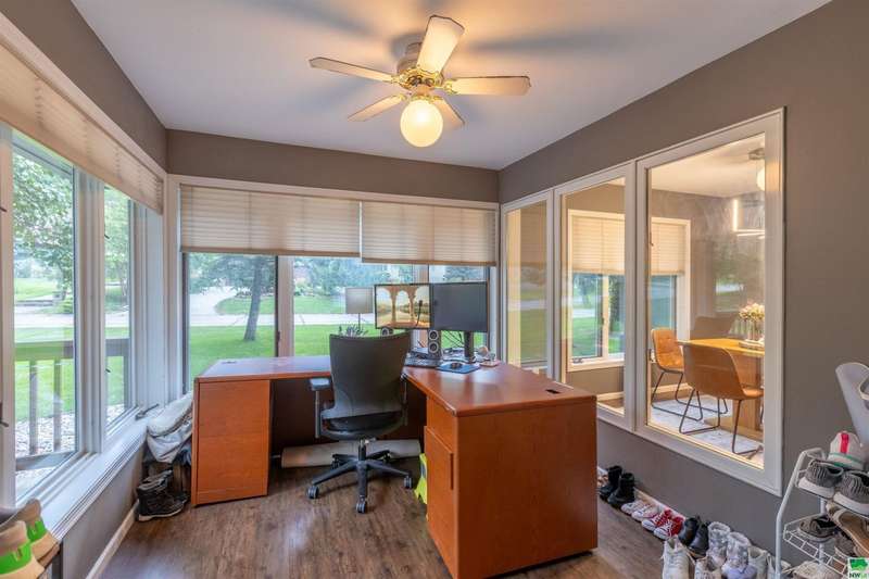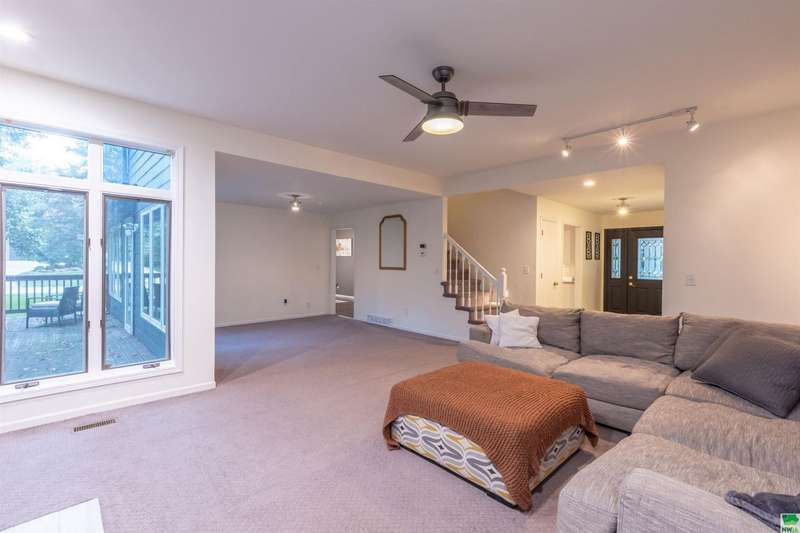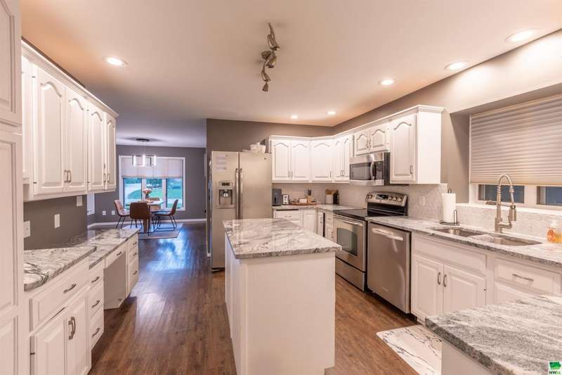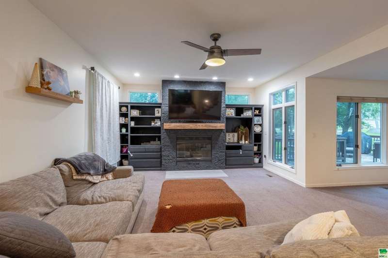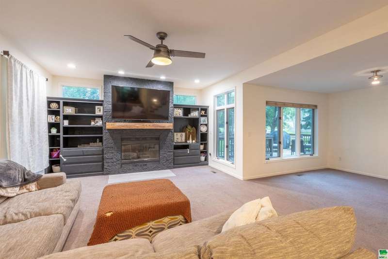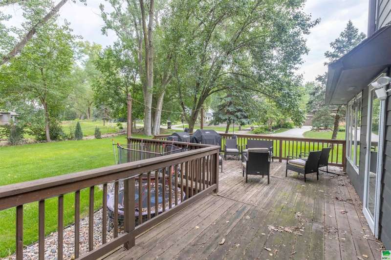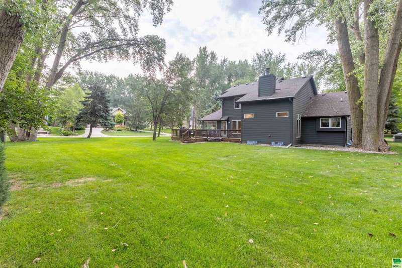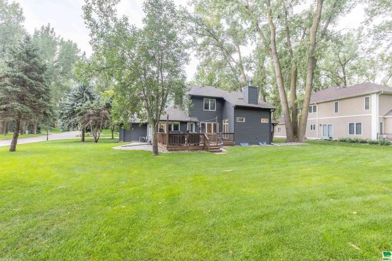 Spacious home in the Dakota Dunes Country Club situated on a corner lot with mature trees and a 3 stall garage. Many updates throughout this fantastic property including a newly finished lower level. The main level features an updated kitchen with granite tops, white cabinets, tile backsplash, SS appliances, and a spacious island. The large master suite includes a walk in closet, a full bath with dual vanities, walk in tile shower, and a soaking tub. The formal living room has plenty of natural light and boasts a stone surround gas fireplace with built ins on both sides. Main level amenities also include a formal dining room, office space with access to the deck, formal dining room, and a half bath. The newly finished lower level offers 1400sf of additional space with stained concrete floors, wet bar area, spacious family room, a non conforming bedroom with a walk in closet, and a 3\4 bath. The backyard setting is great for entertaining with a large deck and plenty of privacy. This move in ready home is offered at a great value so Dont Delay!!!!