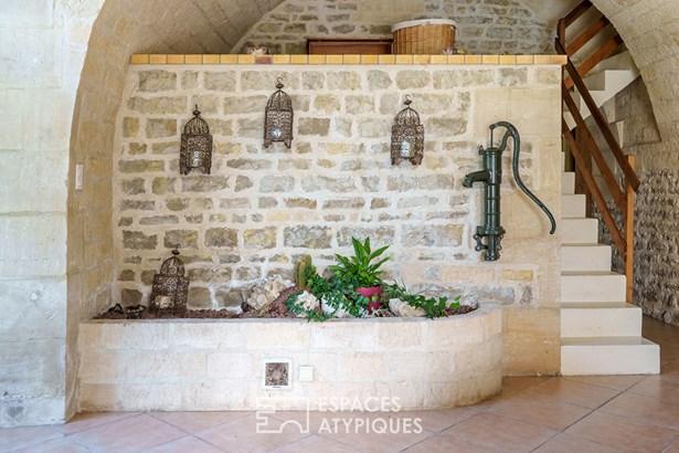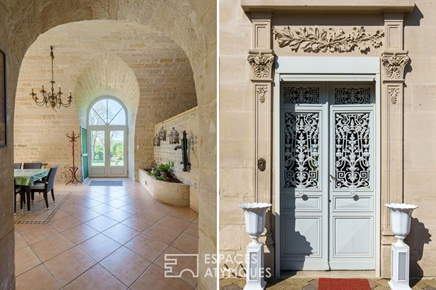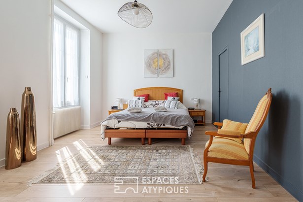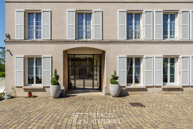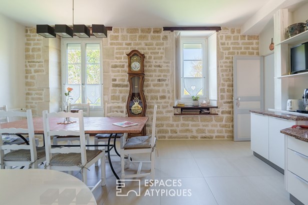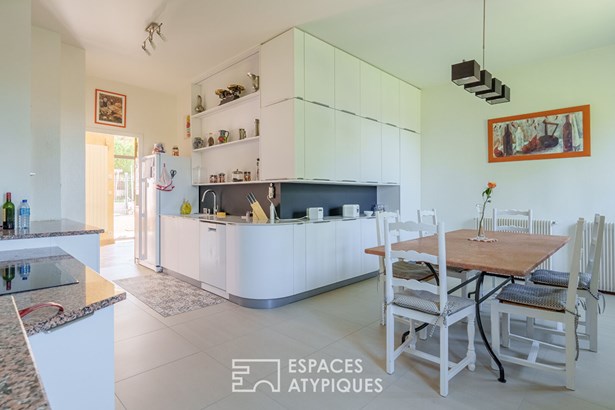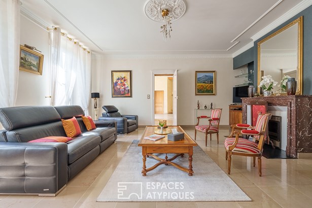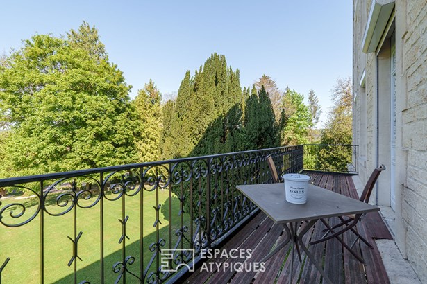 The interior of this home combines authenticity and modernity. On the raised first floor, a spacious living room and lounge open onto a balcony with a breathtaking view over the park, creating a bright, convivial living space. The recently renovated kitchen has been designed as a convivial space, perfect for entertaining family and friends. It also features a utility room, a real functional asset. This level also includes two offices.