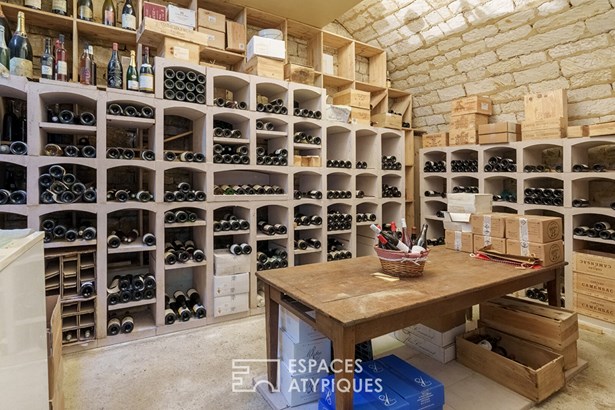 The property also features a garage for two vehicles, a garden chalet and a greenhouse. The 264 m2 vaulted cellar is luminous thanks to its openings, providing a unique space for entertaining, with a functional fireplace, a bread oven, a dining room and a partially equipped dance room, directly accessible from the park.