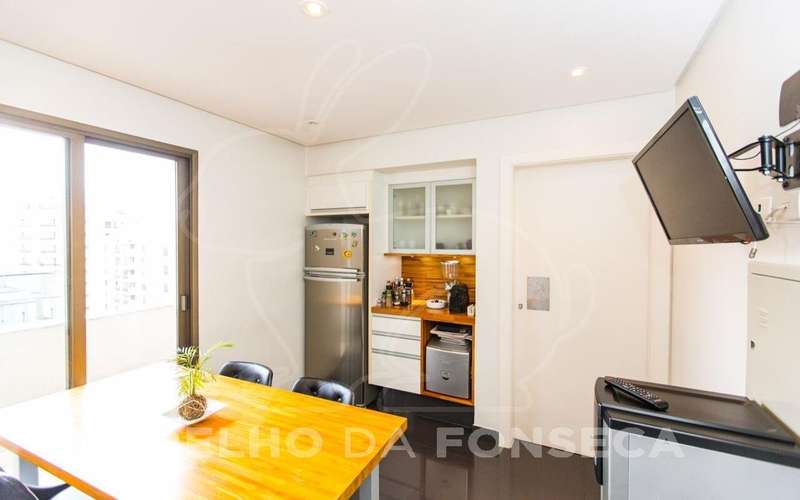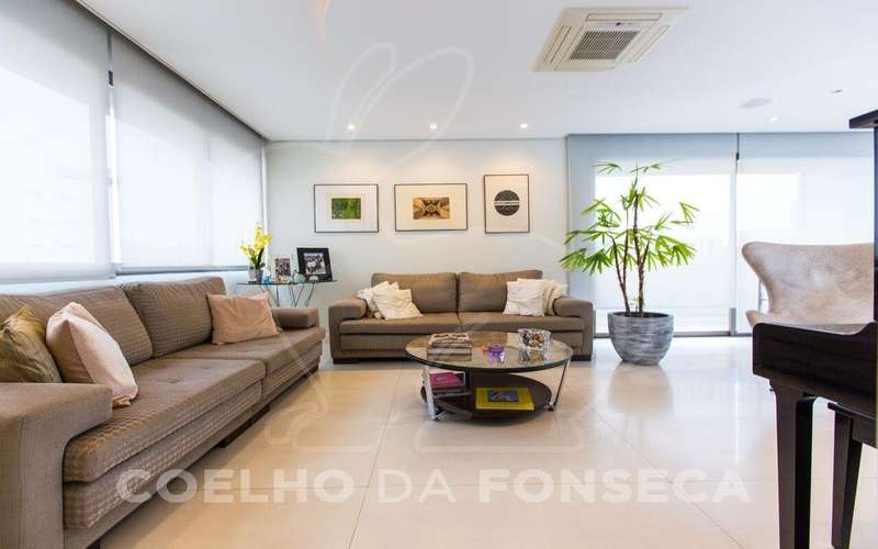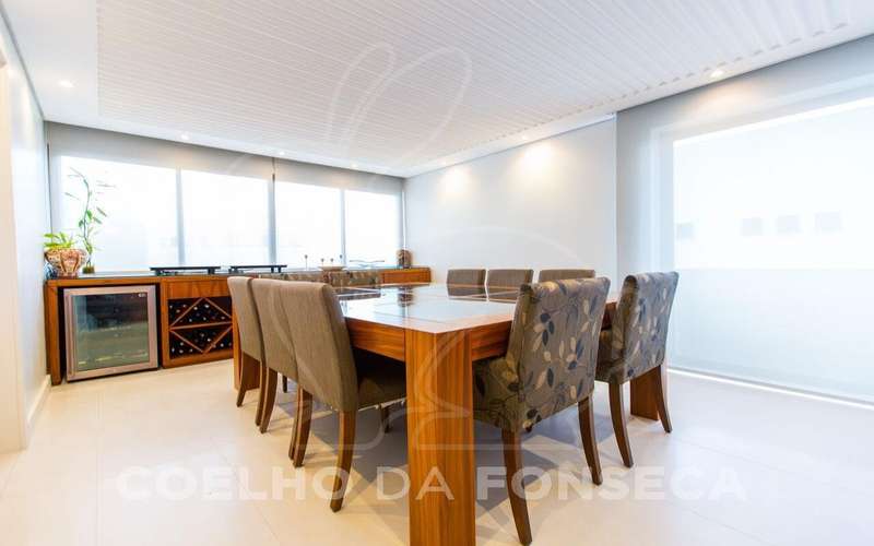 Cobertura totalmente envidraçada, ampla, arejada e bem distribuída. Living avarandado comporta vários ambientes, possui agradável área externa com piscina aquecida e deck em madeira. Home theater com lareira e bar integrando harmonicamente as áreas interna e externa do imóvel. Ar condicionado, área gourmet, sauna a vapor, sistemas de alto falantes e iluminação embutidos, closets, copa, cozinha, repleta de armários de boa marcenaria e aquecimento solar.
