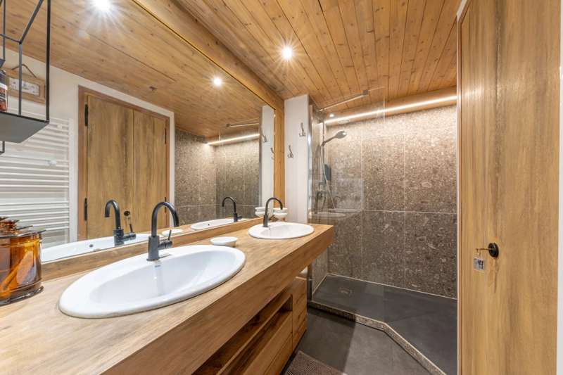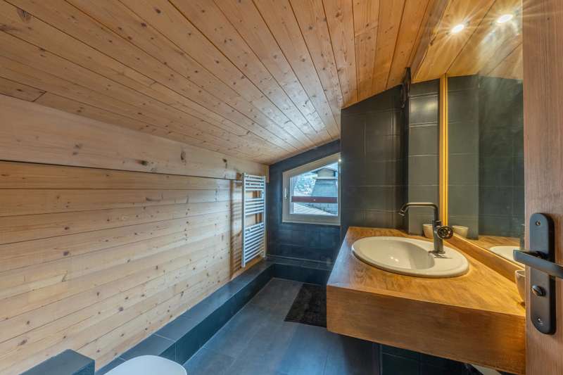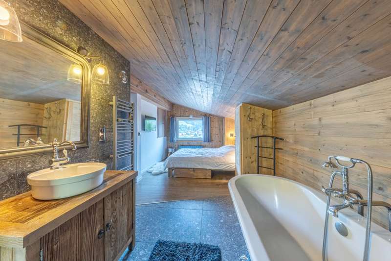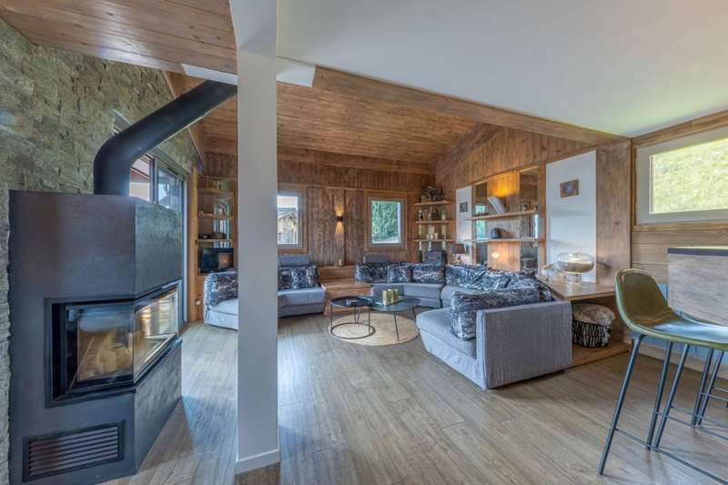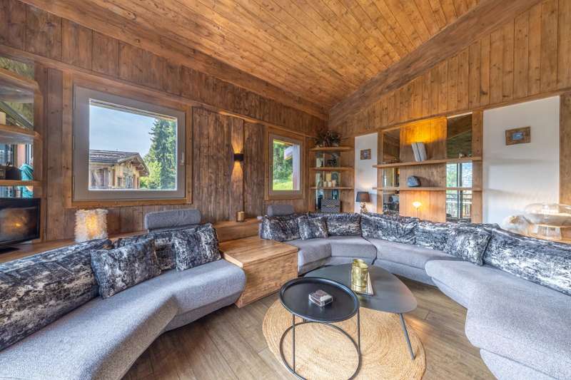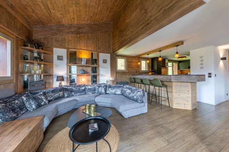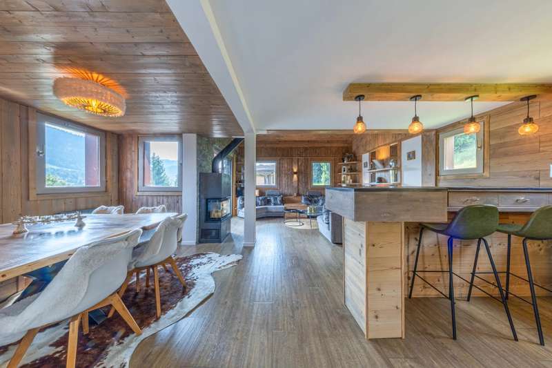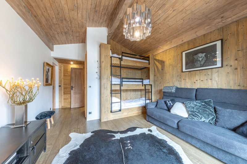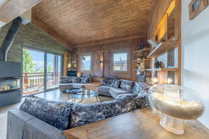 On the top floor of a perfectly maintained condominium, just a few steps from the centre of the village of Megève, this superb apartment combines comfort, elegance and exceptional views. With a surface area of 109 m² (91,6 m² Loi Carrez), it opens onto an entrance hall with storage space and guest WC. The living area, bathed in light thanks to its south-facing aspect, comprises an open-plan kitchen, a cosy dining room, and a living room with a fireplace and high ceilings. The space is extended by a corner balcony offering breathtaking views of the village and the surrounding peaks. The sleeping area comprises a large bedroom with en-suite bathroom and a second south-facing balcony. Upstairs, there is a double bedroom with an open-plan bathroom and a children's bedroom, also with its own bathroom. A very large enclosed garage, an underground parking space, two cellars and two ski lockers complete this property.
