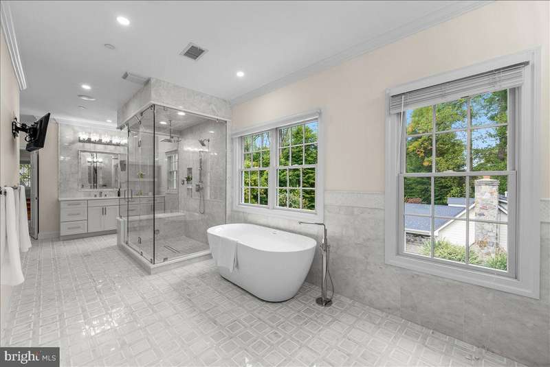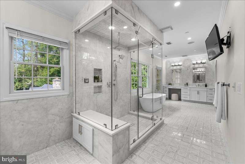 Custom built in 2006 and inspired by the country estates in Pennsylvania, this property was crafted for luxurious living and grand scale entertaining. This colonial style home underwent a complete top-to-bottom renovation that completed in 2024, consisting of high-end materials and finishes. Featuring top-grade Italian marble, refinished wood floors, solid wood doors throughout, crystal chandeliers, four-inch recessed lights, all new bathrooms and fixtures, and porcelain tile lower level floors.The gourmet kitchen with a full suite of high-end appliances and large island connects with an eat-in breakfast table, adjacent to the great room with 11 ceilings, surrounding windows, and access to the screened-in porch. An elegant formal dining room adjacent to the living room and kitchen comfortably hosts more than 15 guests, with outside access onto the expansive rear slate terrace through French doors. The terrace overlooks the professionally landscaped grounds, an outdoor heated and saltwater pool with cover, and a complete guest/pool house with a living room, kitchenette, two bathrooms, a bedroom, and laundry - providing all living necessities. The primary bedroom on the second level of the main home spans the entirety of the rear and includes a sitting room, balcony, breakfast bar, custom walk-in closets and changing room, and a large bathroom space with a steam shower and soaking tub. Three other bedrooms with adjacent bathrooms are on the second level as well as a sitting room area and laundry room. The top level includes a private sitting room connecting to the fifth bedroom. The lower level offers an expansive area with walkout to the rear garden and having multiple spaces for everyday living; a kitchenette connecting to a large second family room with a gas fireplace, AuPair suite, exercise room, recreational room, home theater room, creative room, and storage space. A three-car attached garage enters into the mud room on the main level, with a vast amount of additional parking available around the wide circular driveway. Conveniently located approximately halfway between the Potomac Village and the Congressional Country Club, the property offers easy access for anyone traveling to Washington DC, Tysons Corner, Bethesda, and the Dulles and 270 business corridors. Reagan National and Dulles International Airports are approximately 35 minutes away. There are excellent public and private schools, seven universities, and renowned medical facilities in the area. With nearby walking amenities that include Potomac Village, Avenel Park, and Heritage Farm Park, this home offers the best of Potomac living.