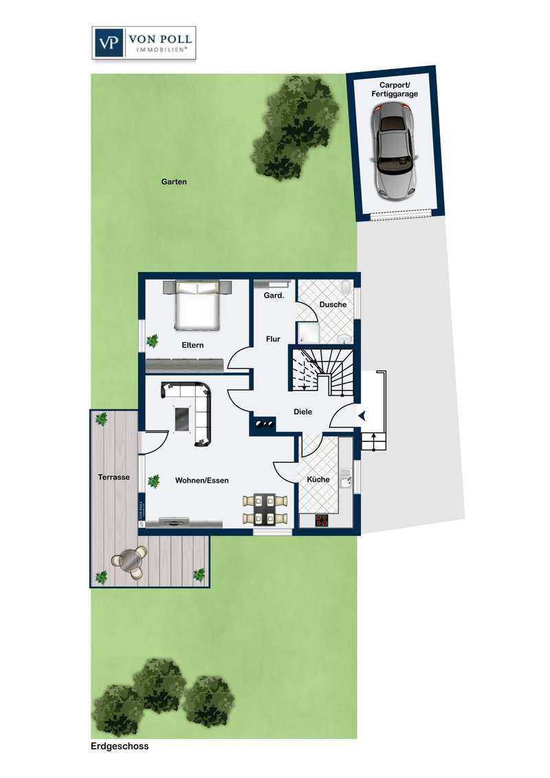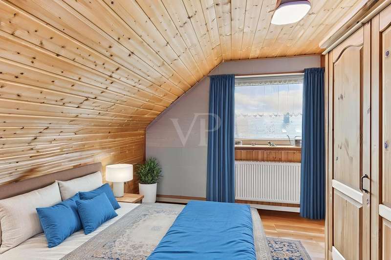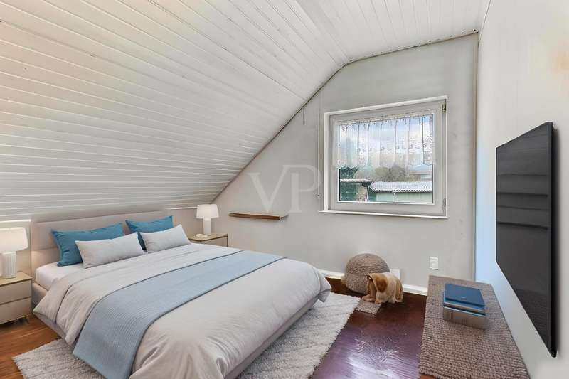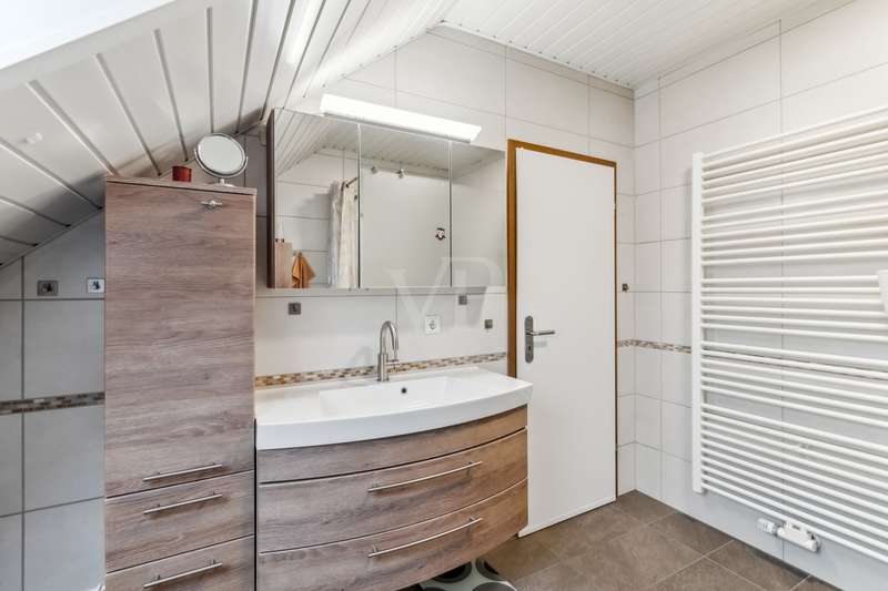 Welcome to this well-kept detached house from 1986, which is situated on a spacious plot of around 743 m². The living space of approx. 120 m² is intelligently distributed over a total of five rooms, offering a variety of living and working options for families or couples. The room layout is well thought-out and functional and allows for many creative ideas for redesigning. The property is divided into a basement, first floor and a converted attic. The furnishings are of a normal standard with a solid basis for individual furnishing and well-being. The house has been regularly maintained and modernized since its completion. Particularly noteworthy is the modernization in 2020. The bathroom on the top floor was completely renovated to meet modern standards of functionality and design. The central electric heating system was also replaced in 2020. This ensures pleasant heat distribution throughout the house and guarantees contemporary living comfort. The first floor welcomes you with an inviting entrance area. From here you enter the spacious living/dining room with fireplace, which offers plenty of light thanks to large windows and provides direct access to the terrace and the spacious garden area. Adjacent to the living room is the kitchen, which is equipped with a fitted kitchen and has plenty of storage space. There is also a guest WC with shower and an additional room on this level, which can be used flexibly as a guest room, study or bedroom. Three further bedrooms are available on the converted top floor of the house, two of which offer direct access to the balcony. These rooms are ideal for family members or as office space in a home office. The access to the balcony on the top floor invites you to spend relaxing hours in the fresh air. A large, modern bathroom with shower rounds off the space on this floor. Outside, a spacious garden area awaits you, offering a wide range of leisure activities. Whether you want to garden or give the children space to play - the property offers plenty of open space. The house has a basement and therefore offers additional storage space for supplies or hobby equipment. There is plenty of space for your vehicles in the carport. In summary, the detached house is an ideal residence for families or couples who value a well-maintained property with a balanced room layout and sufficient open space. In terms of features and location, the house presents itself as an attractive offer for prospective buyers looking for a comfortable home in an appealing environment. See the many advantages and charm of this property for yourself and arrange a viewing today.