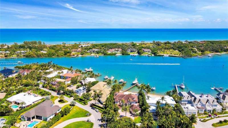 Absolutely Stunning One of a Kind Opportunity to Own on the Direct Blue Water Intracoastal in Martin County Jupiter/Tequesta encompassing .713 Acres of Gated Privacy. This palatial estate home is custom designed and beautifully laid out for entertaining on a grand scale as well as family enjoyment. As you enter through the double doors into the 2 story formal living room complete with Gas Fireplace and Full Wet Bar will greet you with a wall of windows giving way to breath taking Blue Water Views. The Main Level includes Formal Living, Dinning, Chefs Kitchen, Family Room/Informal Dinning,2 Ensuite Guest Bedrooms, Half Bath, Laundry, 3 Car Garage. Second Level Boasts 2 Sumptuous Primary Suites and Baths with Private Balconies overlooking the Intracoastal and another ensuite Guest Bedroom.