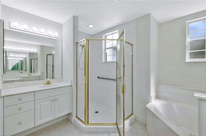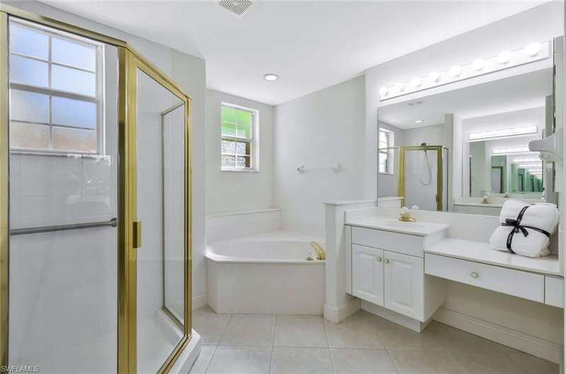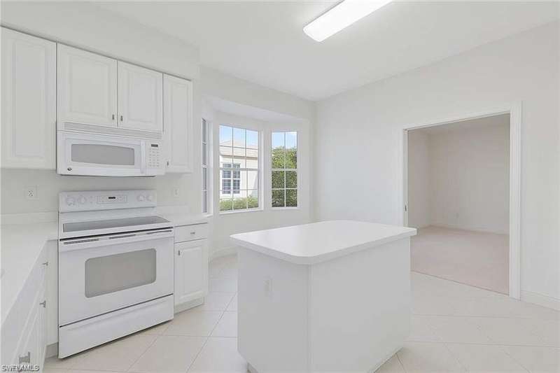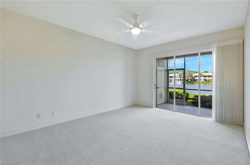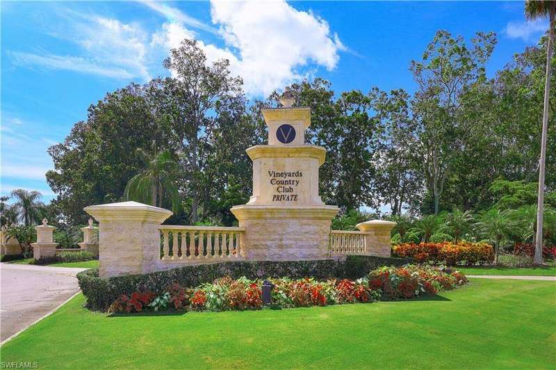 This Vineyards home has stunning LAKE views and an array of recent upgrades, making it move-in ready. Featuring brand NEW flooring, this home also boasts a NEW water heater, NEW air conditioner, NEW fixtures, NEW bathroom faucet and NEW fans. The spacious, neutral interiors create an inviting atmosphere and serve as the perfect canvas for your unique decorating style. Enjoy the convenience of a first-floor residence-no stairs to climb-and a generous TWO CAR garage providing ample storage and parking. The large DEN can be used as a 3rd bedroom. The kitchen and foyer are beautifully tiled on the diagonal, complemented by an elegant decorative inlay in the foyer. The kitchen is enhanced with upgraded easy pullout drawers, adding both style and functionality. Additional upgrades include a NEWER roof and gutters installed in 2020, offering low maintenance living and peace of mind for years to come. Accessibility is effortless thanks to the first-floor location, and the home's open layout makes entertaining and daily living a breeze. This well-maintained residence is truly a blank canvas, ready for your personal touch. Located in one of Naples' most sought-after communities, The Vineyard's offers optional membership to the award-winning Vineyards Country Club. Take advantage of this opportunity to enjoy a vibrant community lifestyle with all the modern luxuries and conveniences you deserve.