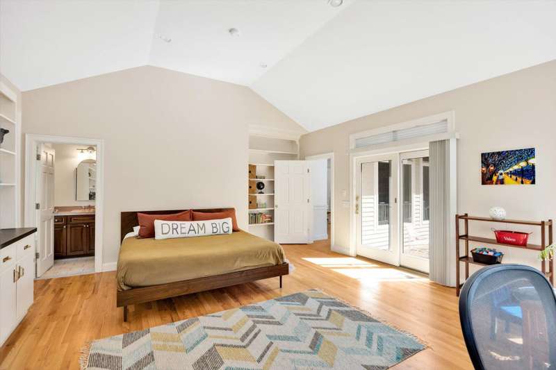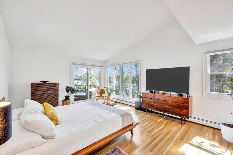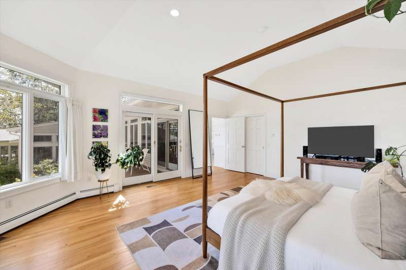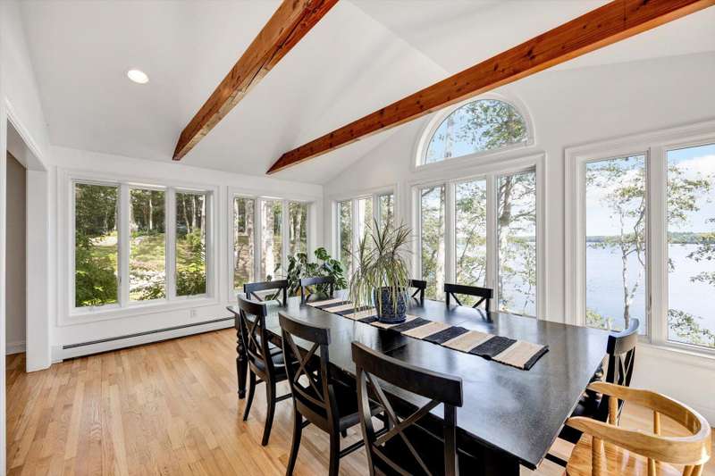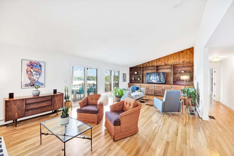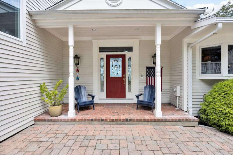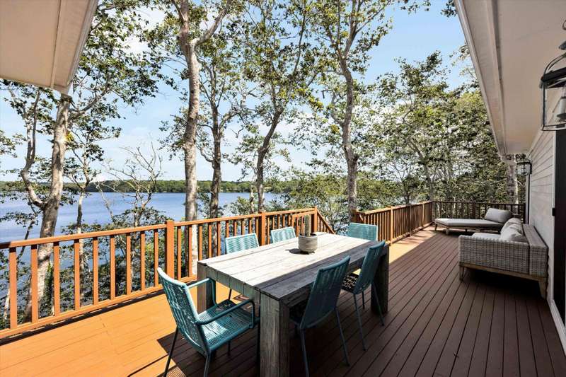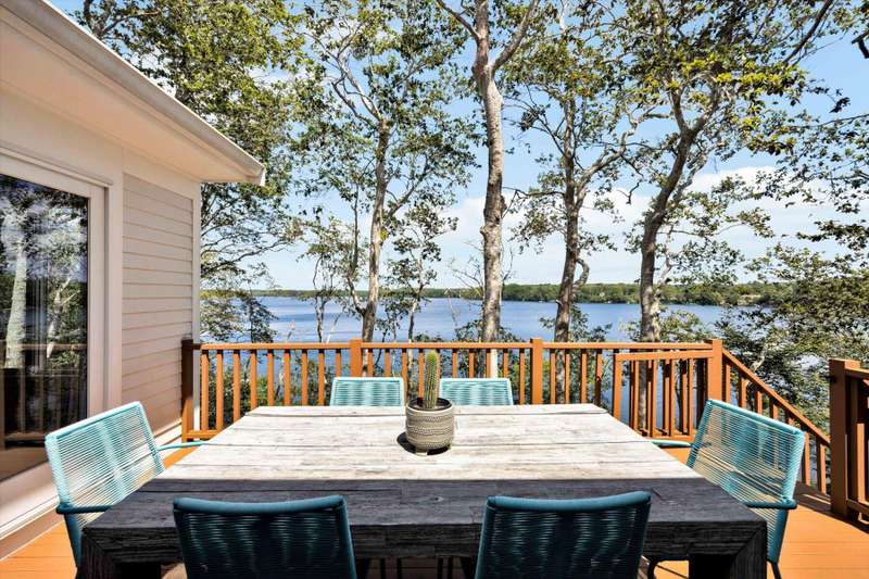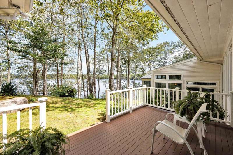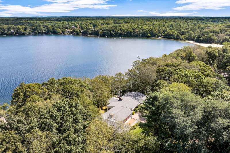 Rare opportunity! This expansive waterfront ranch offers breathtaking views of Mashpee-Wakeby Pond, one of Cape Cod's largest and deepest spring-fed ponds. A unique find among the few homes privileged to sit along its shores, this property is sited on 1.2 acres of resort like grounds and promises an exceptional lifestyle surrounded by natural beauty and privacy. This exclusive offering features a private dock and beach providing direct access to the crystal-clear waters for boating, swimming, fishing or simply relaxing by the water. With soaring cathedral ceilings and an open, flexible floor plan, the design highlights sweeping views of the water and surrounding conservation from nearly every room. The home features three generously sized bedrooms plus an office, each with its own ensuite bathroom. A finished walk-out basement boasts panoramic vistas and endless potential for entertainment or extra accommodations for guests. A short distance to bridges for easy commuting, this phenome