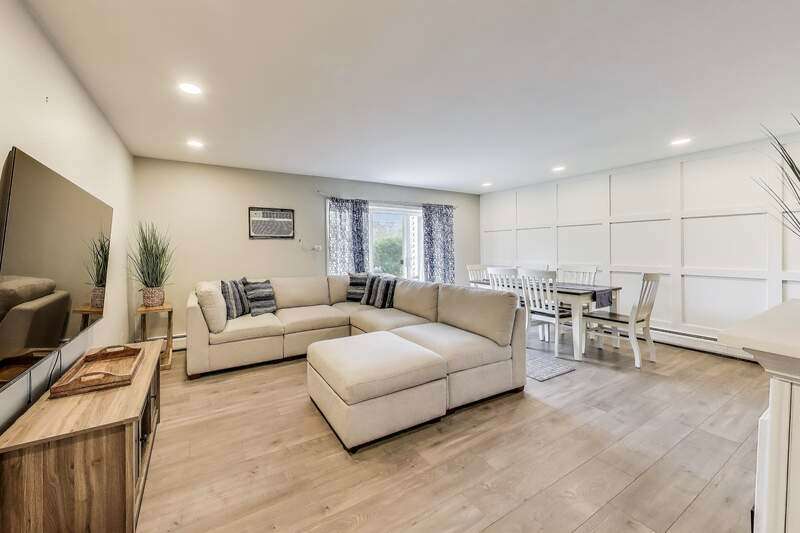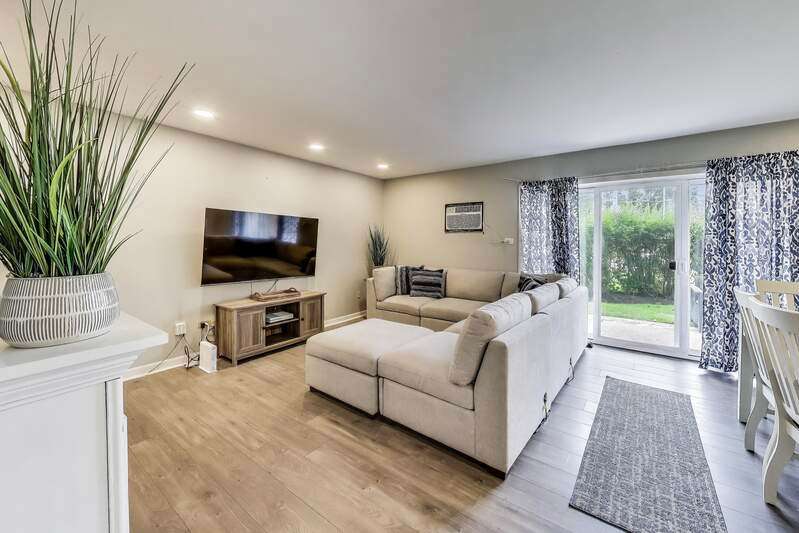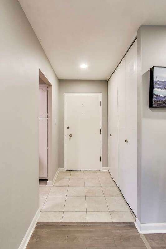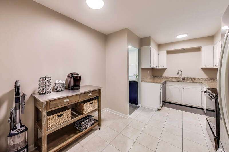 Step into this freshly updated and beautifully appointed residence, where meticulous renovations meet modern living. The recently painted walls in a contemporary gray shade complement the rich wood laminate flooring that flows throughout. Recessed lighting brightens every corner and spotlights a custom white accent feature wall in the dining area. Entertain with ease at the darling quartz-topped coffee and wine bar, complete with matching cabinetry and a built-in wine fridge, an ideal space for morning brews or evening pours. The kitchen dazzles with crisp white cabinets, elegant granite countertops, and stainless steel appliances. With space to add an island or extra table, it's perfect for both casual breakfasts and dinner with guests. Step through the back door onto a generous patio bathed in morning light, perfect for your plants, morning coffee, or casual lounging. The primary bedroom is spacious and serene. Unit has been enhanced in the closet area with a lighted vanity with mirror, offering resort-style convenience right in your suite. The hall bathroom features tasteful, modern-classic finishes. Storage is plentiful inside your unit plus a separate locker in the basement. Enjoy access to a secure bike room, on-site laundry, two outdoor pools, and a clubhouse. Ample common parking spots available with easy access to unload your groceries with first floor patio access. Everything is within easy reach, grocery, banking, dining, and the Metra and downtown Downers Grove. Good Samaritan Hospital is a short drive away, with seamless access to highways and Oak Brook and Yorktown shopping destinations. Recent Upgrades include AC (2020), Dishwasher (2020), Stove (2022), Custom wine/coffee bar (2022), Fridge (2023), Luxury vinyl plank flooring (2024), Primary-suite vanity & mirror (2024), Recessed lighting & ceiling fans (2022)