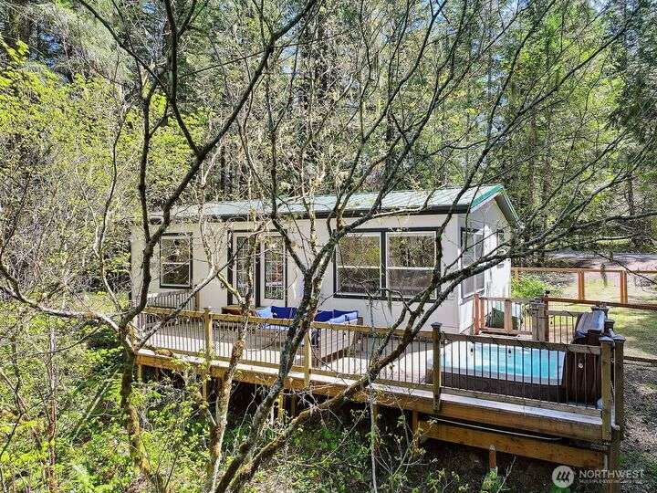 Welcome to your dream retreat! This adorable turnkey cabin is tucked away in the serene beauty of Gifford Pinchot National Forest, offering comfort, nature & adventure. Enjoy mornings on the expansive deck overlooking Martha Creek or unwind in the private hot tub under the stars. Inside, the cozy 2-bed, 1-bath layout is move-in ready & mostly furnished, with warm wood accents & a welcoming atmosphere. The fenced yard is perfect for pups, a cozy fire pit, gardening, or extra parking. Major remodel in 2018. Just 45 min to Portland, 30 to Hood River & 15 to Stevenson—close to skiing, hiking, wind sports, breweries & wineries in the Gorge. Ideal as a full-time home, weekend getaway or vacation rental. Peaceful, private & move-in ready!
