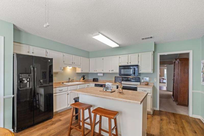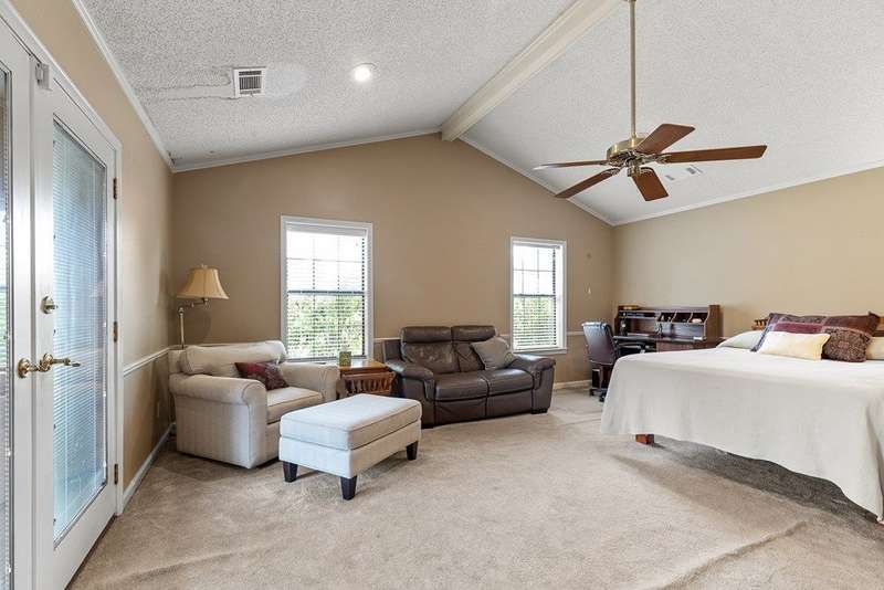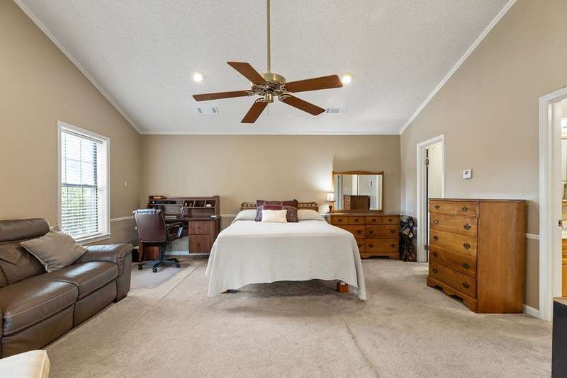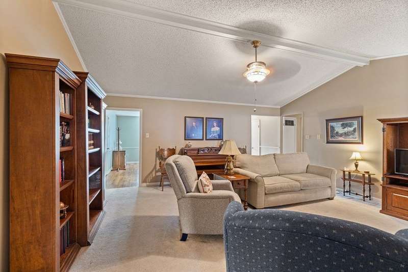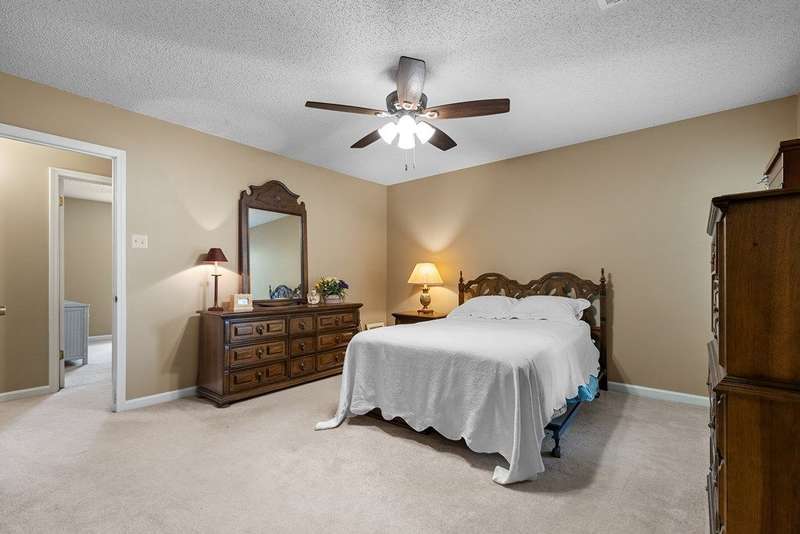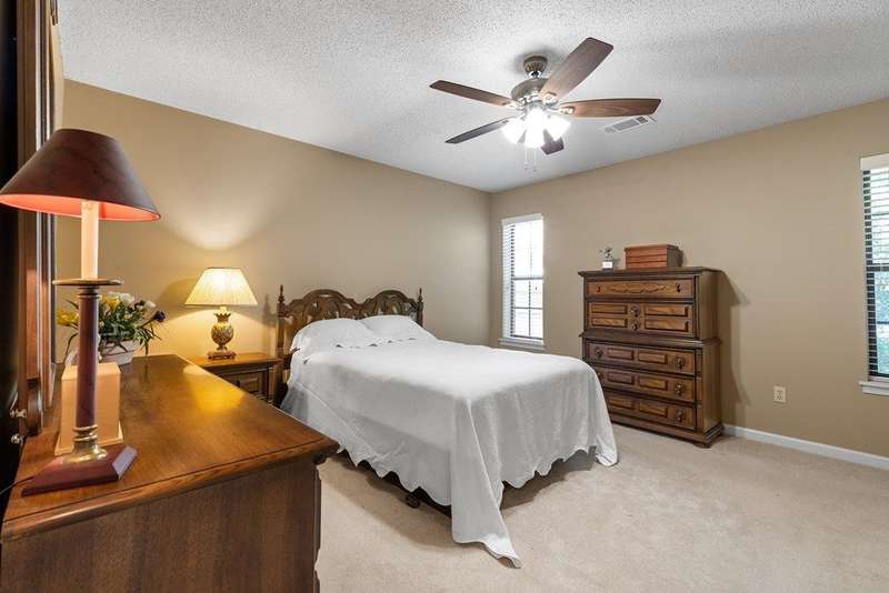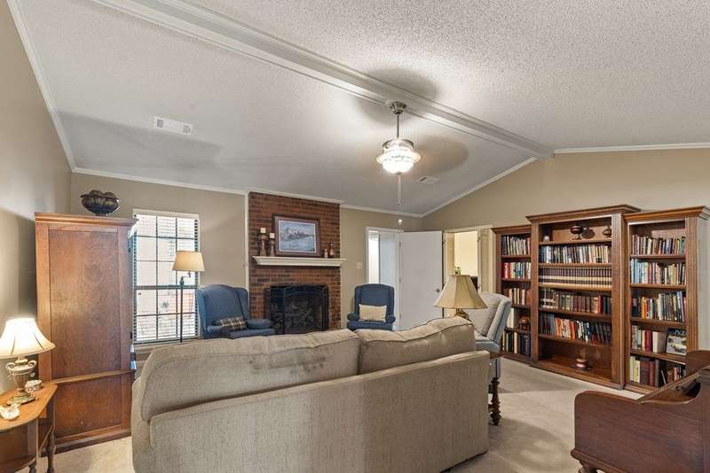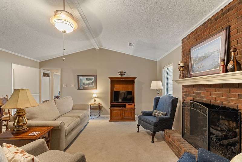 NEW FLOOR COVERING throughout most of the home. New LVP in the family room, office, entry and hall. New carpet in 2 of the 4 bedrooms including the large 2nd primary bedroom. You will feel like you have come home when you walk into this home. All of the Sq. Ft. is on one level. No stairs.This home has a very comfortable floor plan and offers several possibilities with the room sizes being large. In the center of the home is a nice sized family room with wood burning fireplace. There is an oversized kitchen can accommodate a large dining table and chairs. There are plenty of cabinets and there is plenty of counter space. I especially like the large windows looking into the front yard. There are two primary bedrooms with adjoining baths. However, the very spacious bedroom at the back of the home could be another family room. It was originally intended for that use. All of the bedrooms are good sized rooms. In the backyard there is a nice patio and some mature trees for shade. The storage room is wired and has lots of space. Also, there is a good irrigation system for the front yard and flower beds. The new floor covering makes this property a Must See.