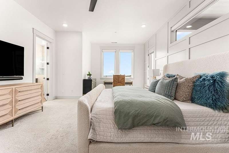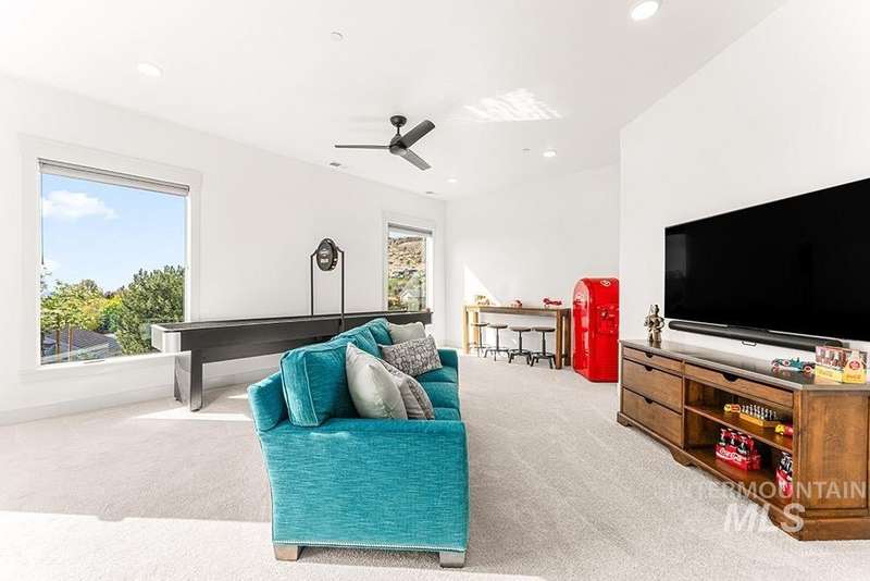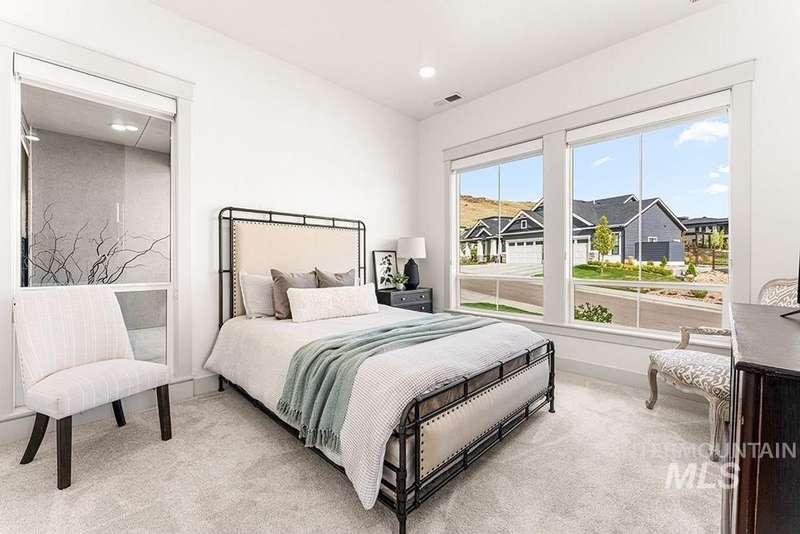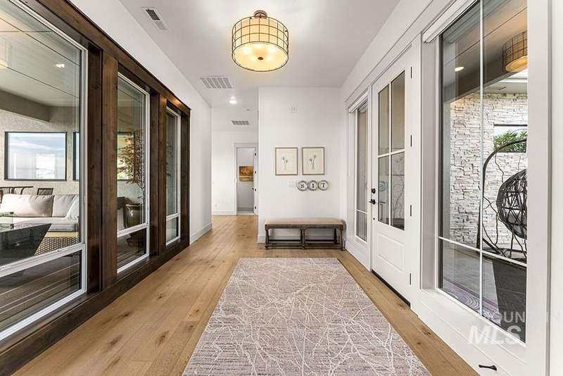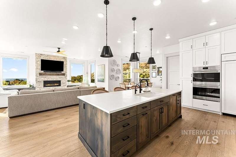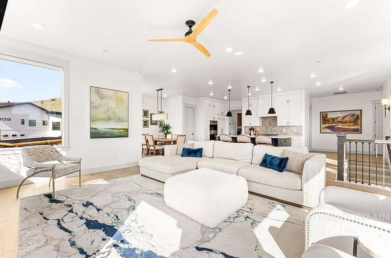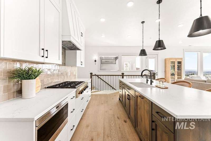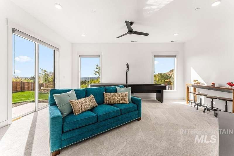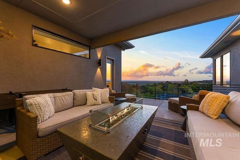 Perched on an exclusive rim-view lot in Boulder Point, this one-owner residence captures sweeping views from Table Rock to Downtown! Designed to live like a single level, the home features a walk-out lower level and a layout that seamlessly blends indoor and outdoor living. The grand foyer opens to an expansive great room with 11’ ceilings, hardwood floors, & walls of windows. The kitchen showcases floor-to-ceiling cabinetry, marbled quartz countertops, and a suite of built-in Wolf & Sub-Zero appliances. The main-level master offers private balcony access & a spa-inspired en suite bath. A fabulous guest suite completes the main level. The walk-out lower level expands the living space with a generous bonus room, additional bedrooms, & direct access to a flat lawn—perfectly suited for a future pool. Additional upgrades include Hunter Douglas automatic blinds, and an invisible pet fence. Residents enjoy access to a clubhouse, swimming pool, neighborhood trails and the best of Boise living!