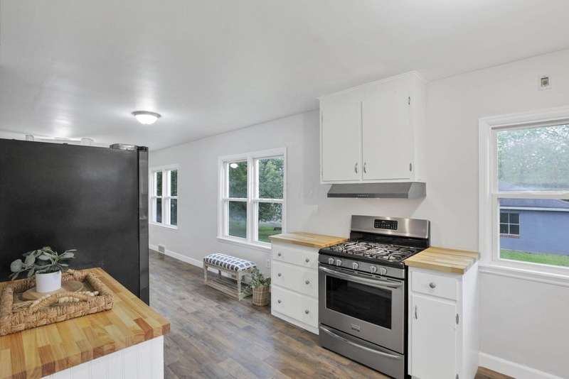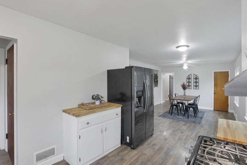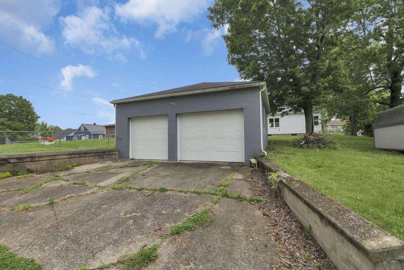 PRICE IMPROVEMENT! So many updates in the last 6 months include; siding, metal roof, carpet, paint throughout, butcher block counter tops, basement partially finished and sump pump. This ranch home with space to grow! Main level offers living room, dining area and kitchen. Three bedrooms on main floor with a full bath. Basement has 2-3 extra bedroom and an additional full bath. Fenced front yard, off street and on street parking as well as a two car detached garage behind home with alley access. Within walking distance to elementary school, close to downtown Newark and Heath.
