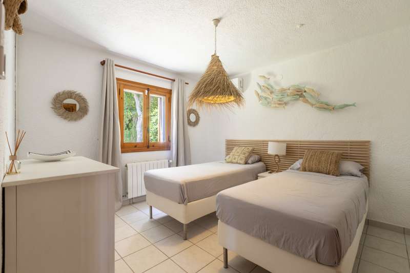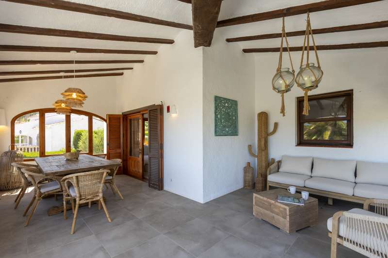 This elegant villa is situated in the sought-after area of Toscal, Jávea, Alicante, and stands out for its recent renovation and excellent location close to all amenities, transport, shops, schools and within walking distance of the sea and beach. The property, set on a generous plot of approximately 840m², offers a private and tranquil setting, ideal for those seeking comfort and exclusivity on the Costa Blanca. The property has four spacious bedrooms and three bathrooms, one of which is en suite, providing ample space for families or guests. Its interior features include air conditioning, gas heating, a cosy fireplace and a jacuzzi, ideal to enjoy any time of the year. The villa has a practical laundry room and a utility room. Outside, the property boasts a private swimming pool and a well-kept garden with automatic irrigation system, perfect for relaxing or holding outdoor gatherings. The uncovered terrace and barbecue area invite you to enjoy the Mediterranean climate and mountain views. In addition, the carport garage offers vehicle protection and easy access. It is an ideal property for holidays as well as for year-round living.