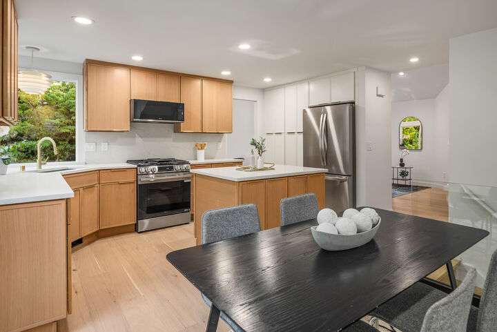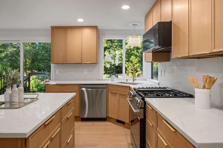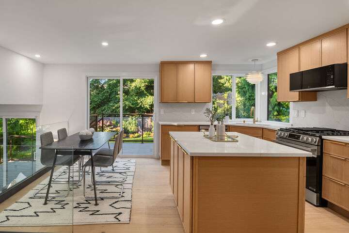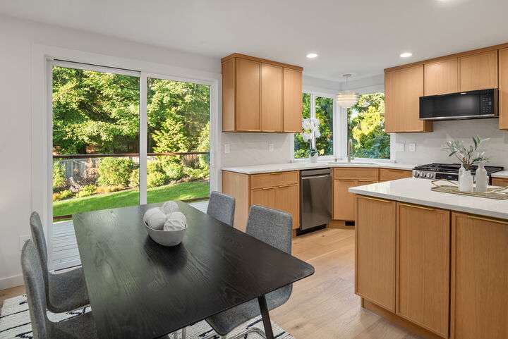 Sleek & timeless comfort meet in this newly renovated home in the coveted Highlands neighborhood. Professionally renovated inside and out w/premium designer finishes & custom touches. Design & functionality blend seamlessly in this gorgeous home. Showcasing soaring vaulted ceilings, custom cabinetry, white oak hardwood floors throughout, Quartz countertops & new appliances in the light filled kitchen, leads to a deck making entertaining a breeze. Retreat to the primary suite w/luxurious bath, loft + 2 bedrooms & designer baths. Beautiful large, private landscaped yard creates a sanctuary that feels a world away. Short stroll to neighborhood parks & Cross Kirkland Corridor. Minutes to excellent schools & all that DT Kirkland has to offer.
