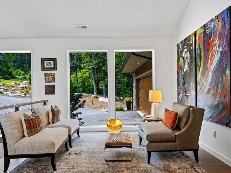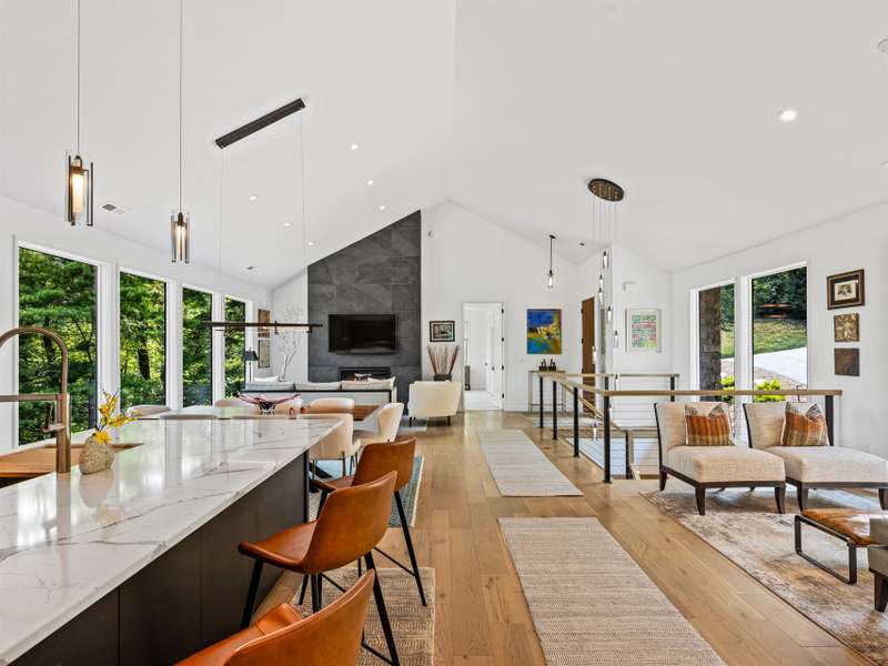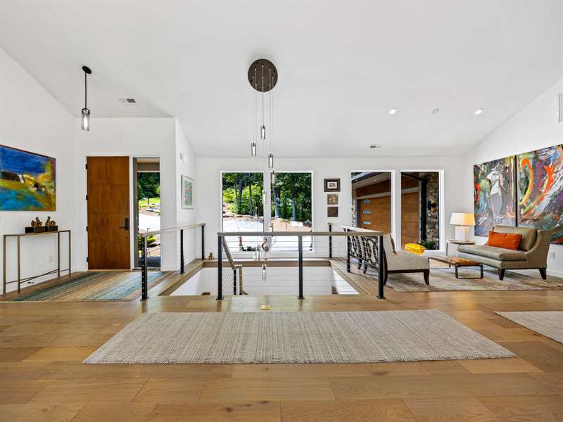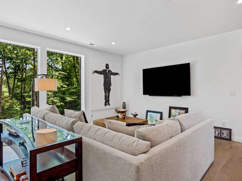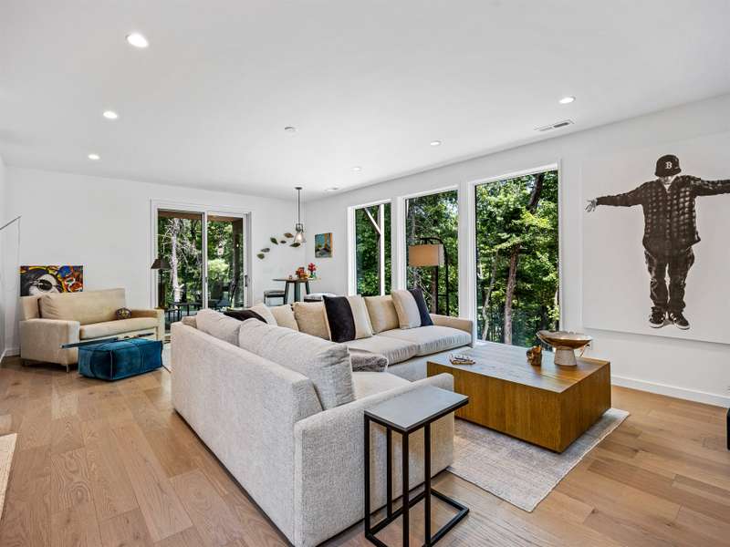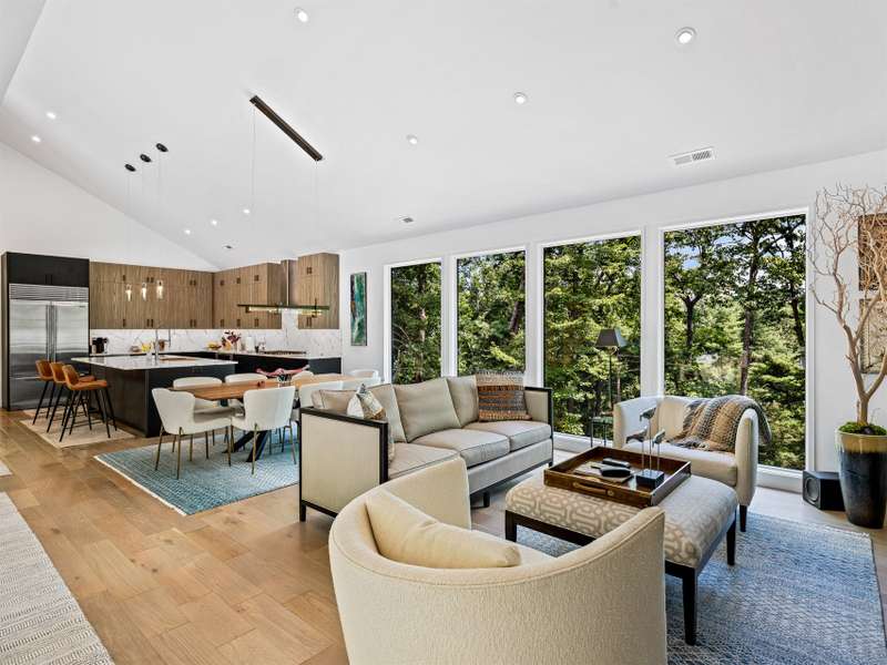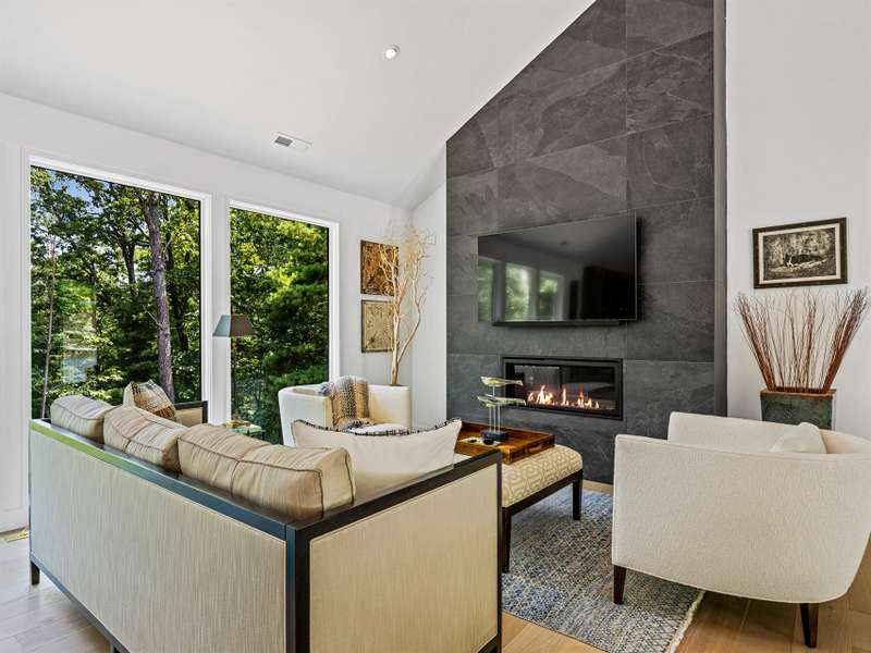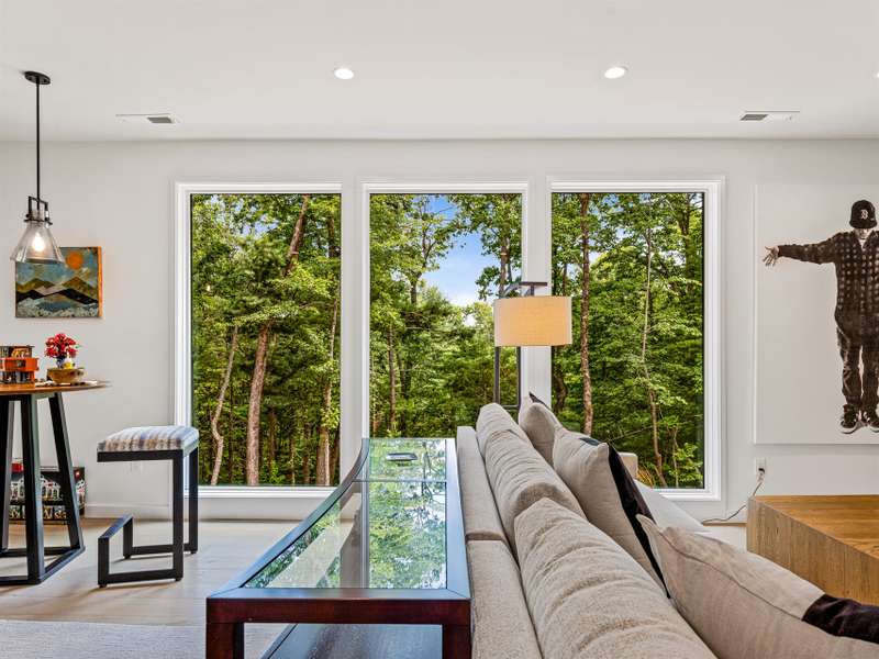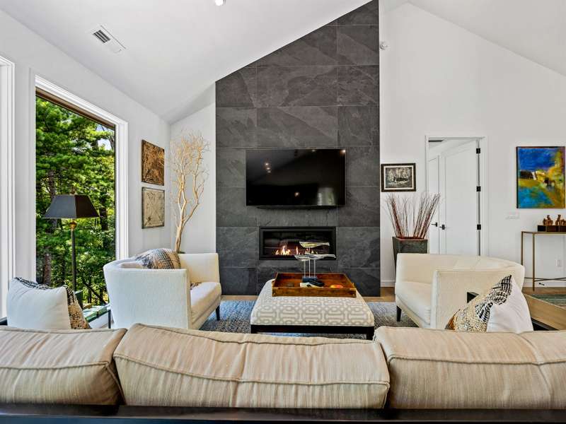 Step into this stunning modern home?a true life-size treehouse with unparalleled privacy. The open-concept great room features soaring 18' ceilings and a striking fireplace wall that anchors the space. Walls of floor-to-ceiling picture windows flood the home with natural light while immersing you in nature's serene surroundings. At the heart of the home is a chef's kitchen designed for entertaining, showcasing custom Cabico cabinetry, quartz countertops and dramatic island, and premium SubZero, Wolf, and Cove appliances. Retreat to the home office?a serene space for creating or peaceful reflection. The terrace level offers well appointed guest spaces with premium tile and designer finishes. Enjoy comfort year-round with three zoned HVAC?one per level and one dedicated to the primary suite?and a whole-house Generac generator. Designer lighting enhances each space, adding warmth and ambiance throughout. Blending sleek design with warmth and comfort, this home inspires at every turn.