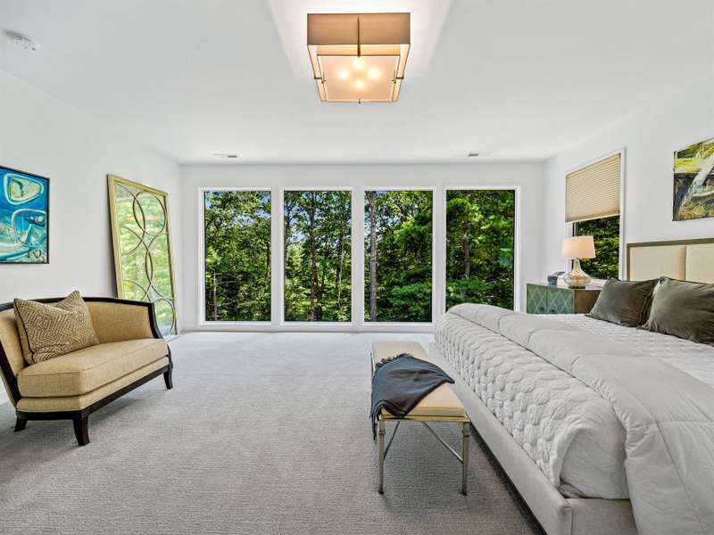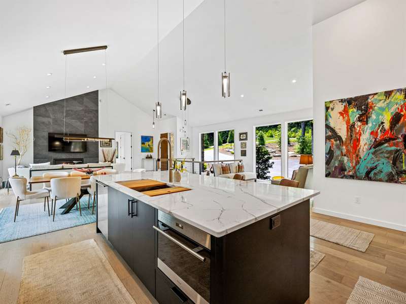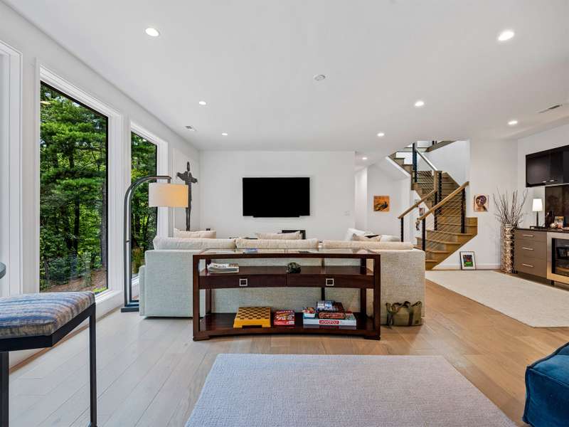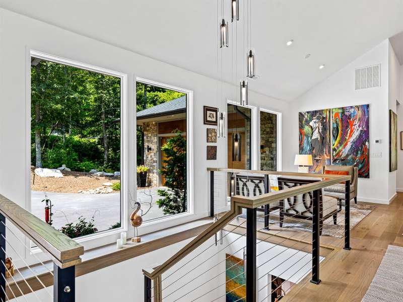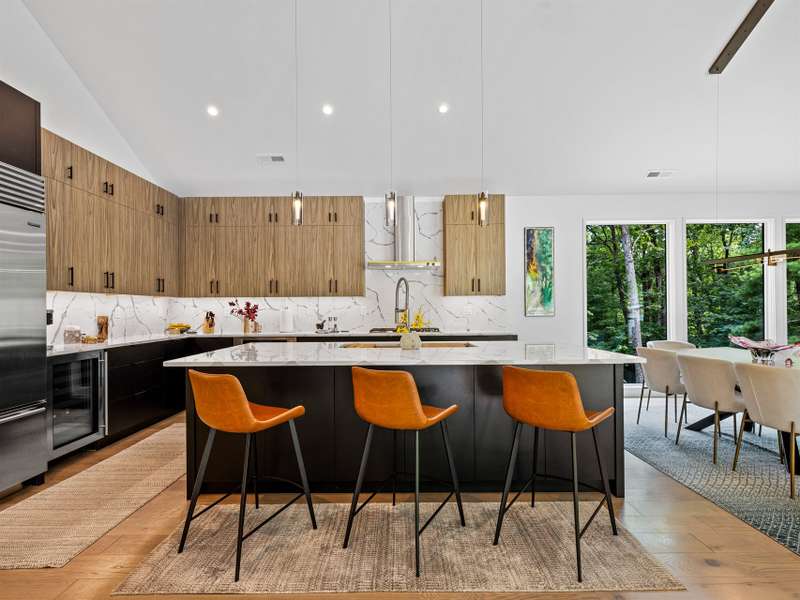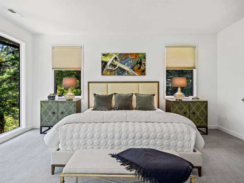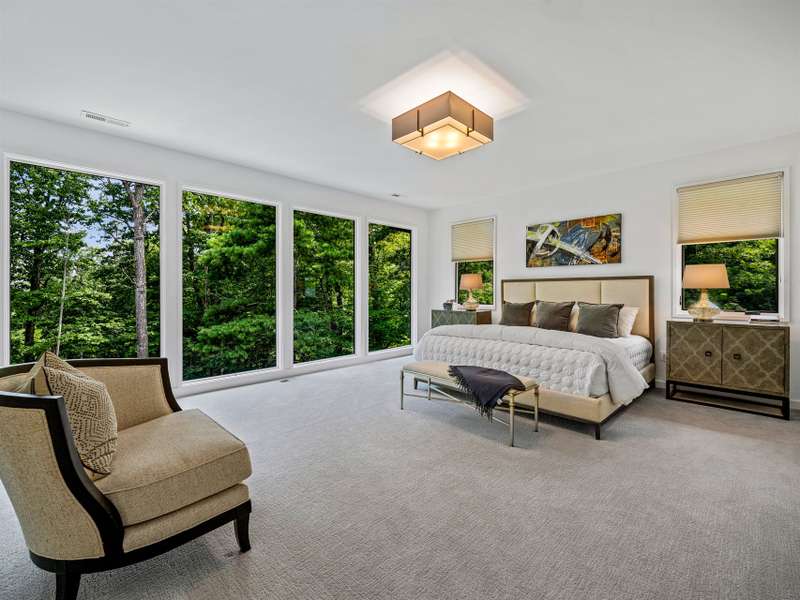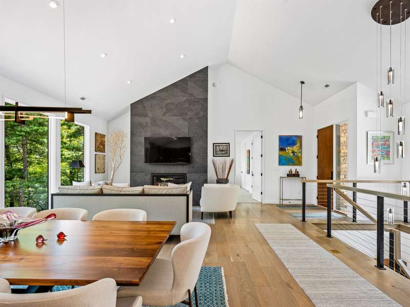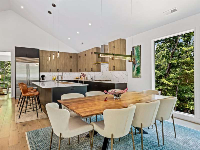 Step into this stunning modern home?a true life-size treehouse with unparalleled privacy. The open-concept great room features soaring 18' ceilings and a striking fireplace wall that anchors the space. Walls of floor-to-ceiling picture windows flood the home with natural light while immersing you in nature's serene surroundings. At the heart of the home is a chef's kitchen designed for entertaining, showcasing custom Cabico cabinetry, quartz countertops and dramatic island, and premium SubZero, Wolf, and Cove appliances. Retreat to the home office?a serene space for creating or peaceful reflection. The terrace level offers well appointed guest spaces with premium tile and designer finishes. Enjoy comfort year-round with three zoned HVAC?one per level and one dedicated to the primary suite?and a whole-house Generac generator. Designer lighting enhances each space, adding warmth and ambiance throughout. Blending sleek design with warmth and comfort, this home inspires at every turn.