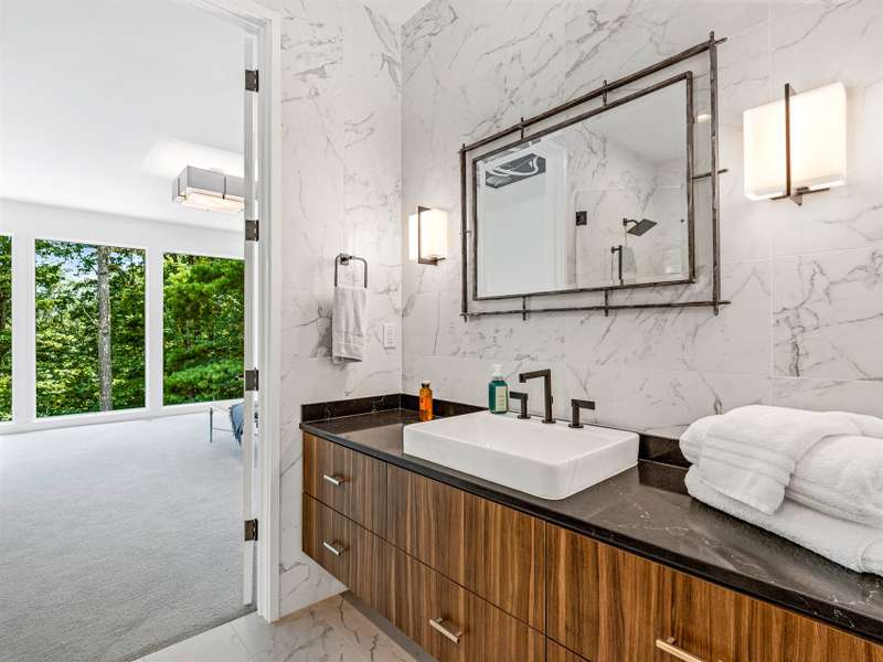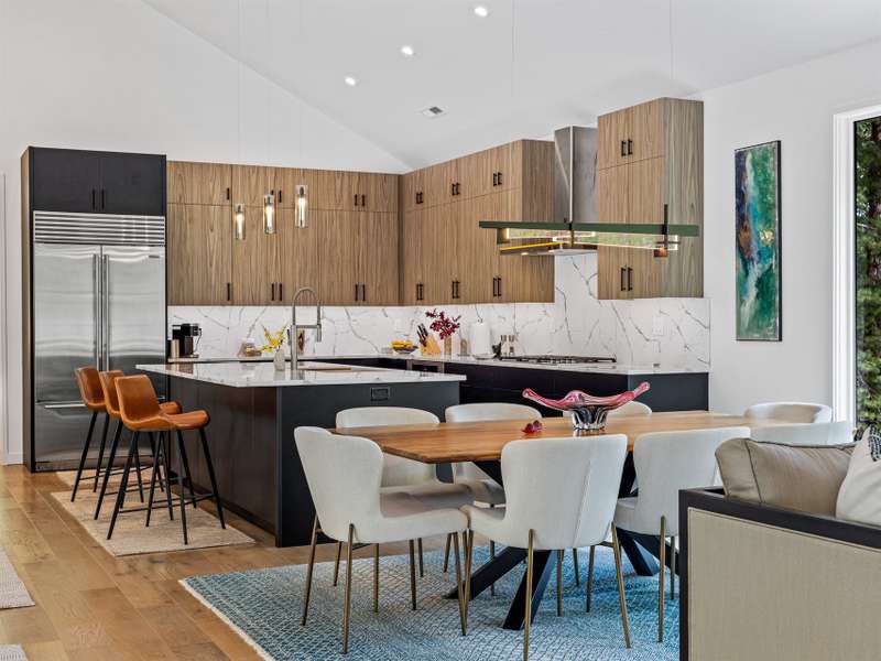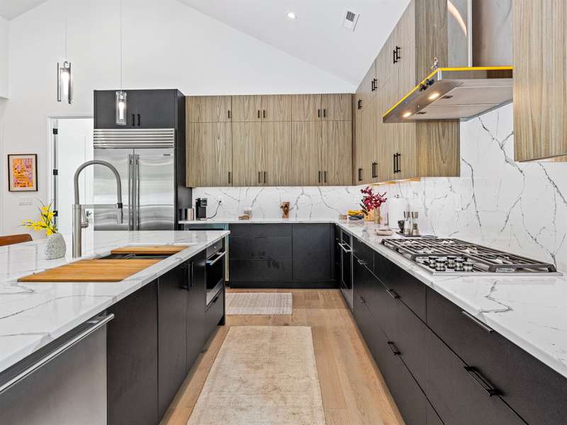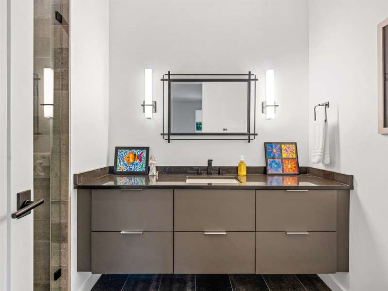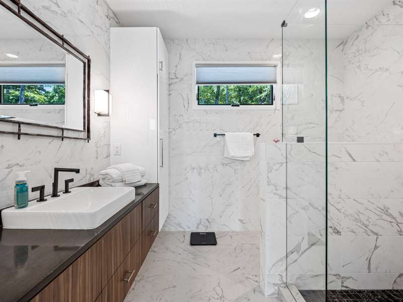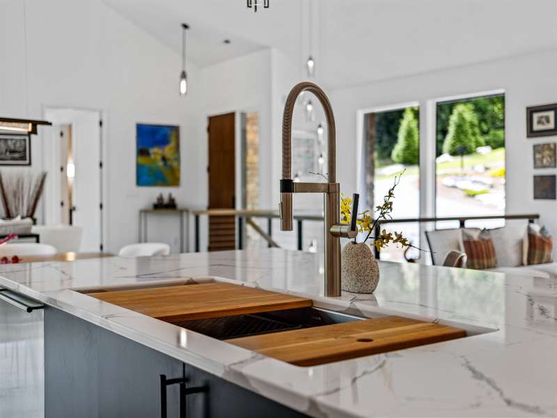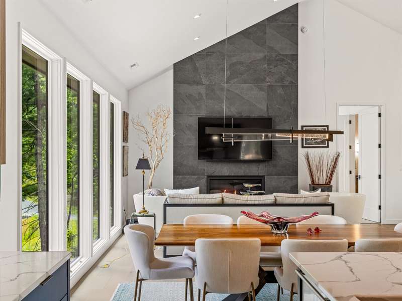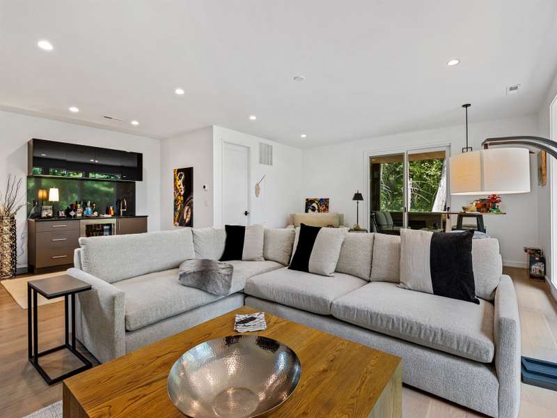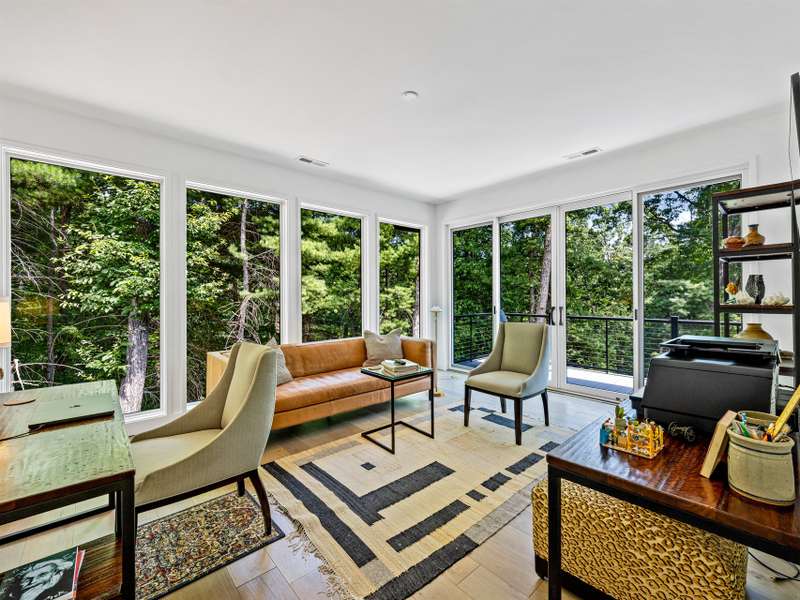 Step into this stunning modern home?a true life-size treehouse with unparalleled privacy. The open-concept great room features soaring 18' ceilings and a striking fireplace wall that anchors the space. Walls of floor-to-ceiling picture windows flood the home with natural light while immersing you in nature's serene surroundings. At the heart of the home is a chef's kitchen designed for entertaining, showcasing custom Cabico cabinetry, quartz countertops and dramatic island, and premium SubZero, Wolf, and Cove appliances. Retreat to the home office?a serene space for creating or peaceful reflection. The terrace level offers well appointed guest spaces with premium tile and designer finishes. Enjoy comfort year-round with three zoned HVAC?one per level and one dedicated to the primary suite?and a whole-house Generac generator. Designer lighting enhances each space, adding warmth and ambiance throughout. Blending sleek design with warmth and comfort, this home inspires at every turn.