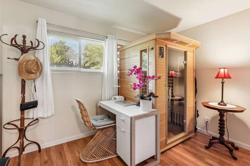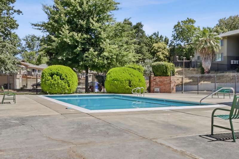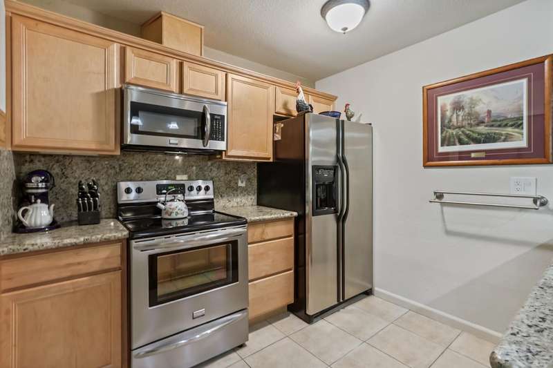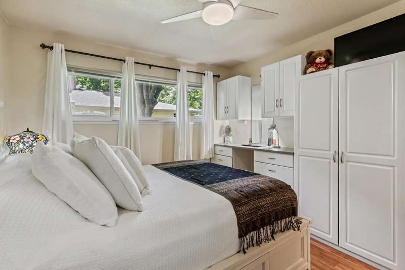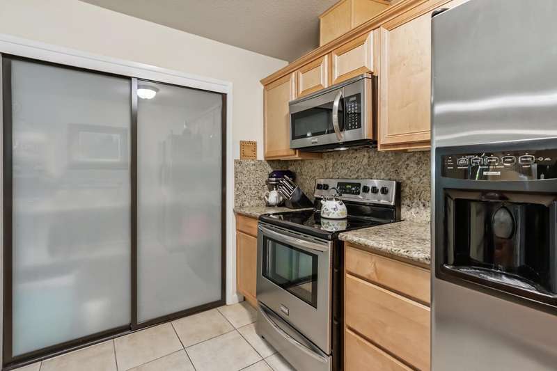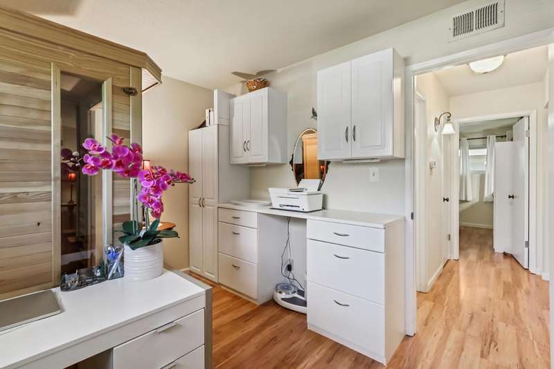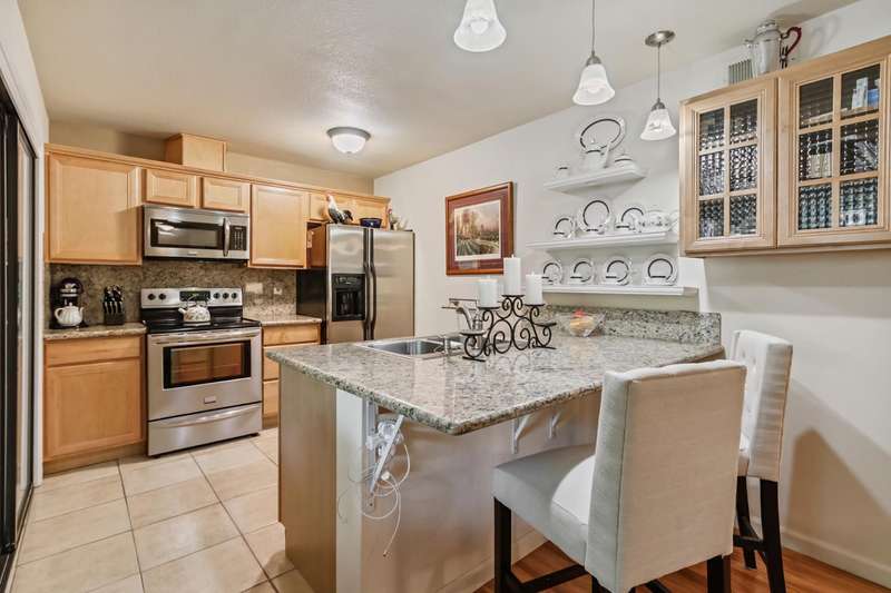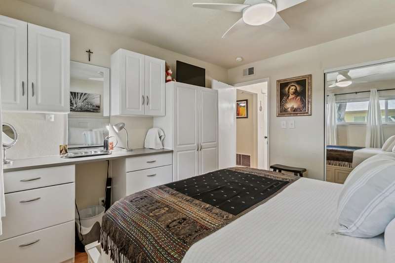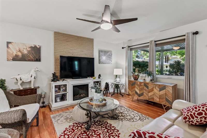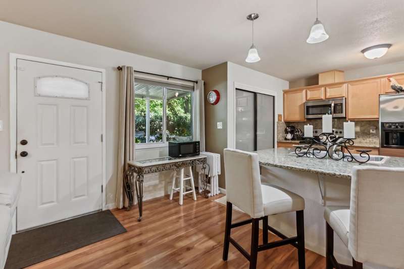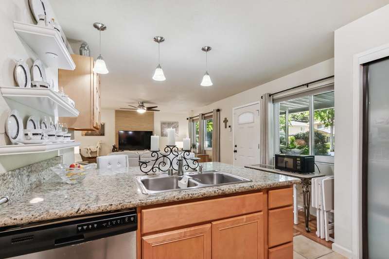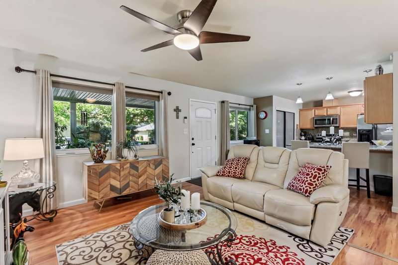 Welcome to this beautifully upgraded, street-facing, single-story bungalow-style condo in the desirable Madison Villa Estates. A charming front patio, framed by lush hedges, offers privacy and curb appeal perfect for morning coffee or evening iced tea. Inside, enjoy a light-filled layout with wood laminate floors, custom lighting, and a striking brick fireplace. The kitchen features granite counters, stainless steel appliances, rich cabinetry, and a spacious pantry. Both bedrooms include built-in dressers, matching flooring, and stylish storage, blending comfort and functionality. This rare single-level home offers seamless indoor-outdoor living near shopping, dining, parks, and major freeways. Act fast, charm, and affordability have merged, resulting in an unbelievable opportunity to own something truly special.