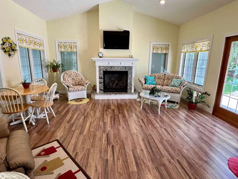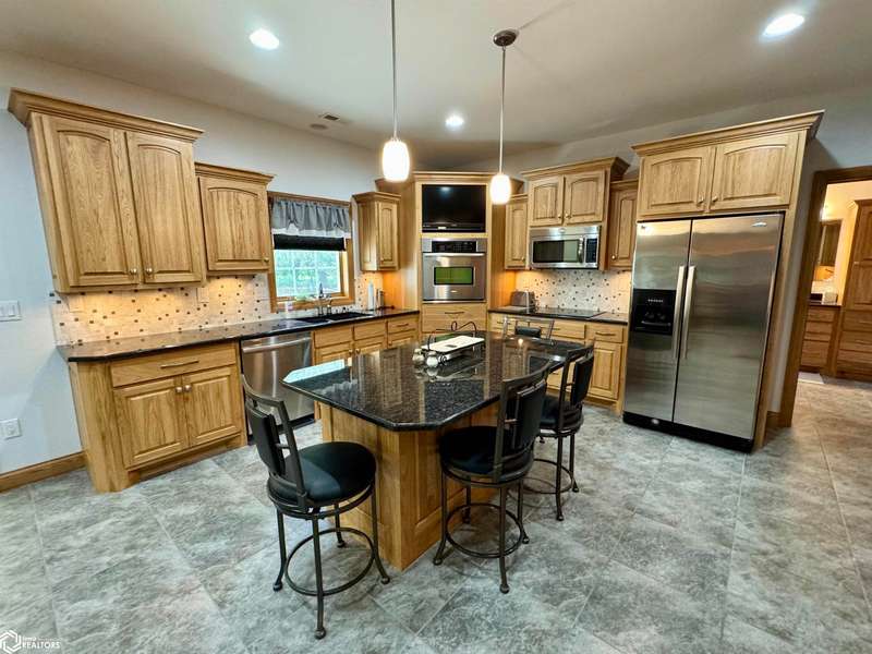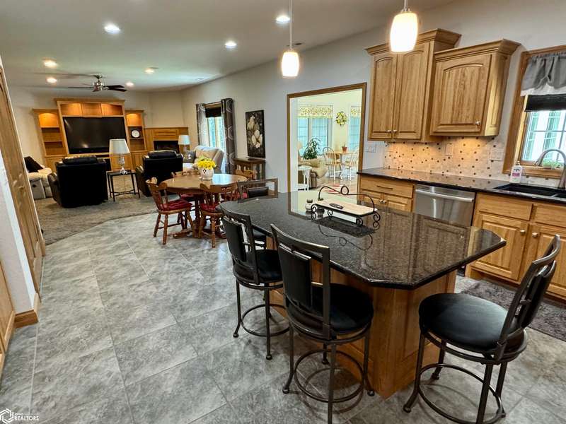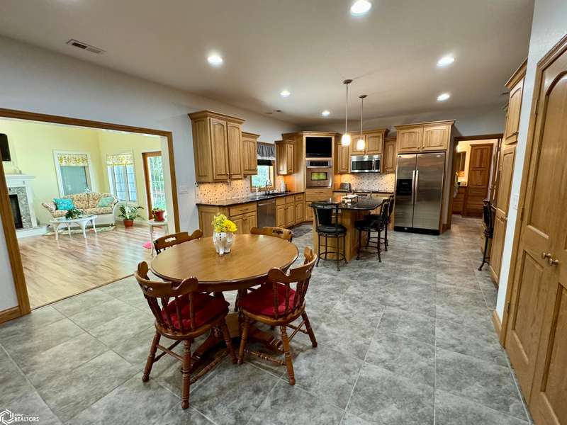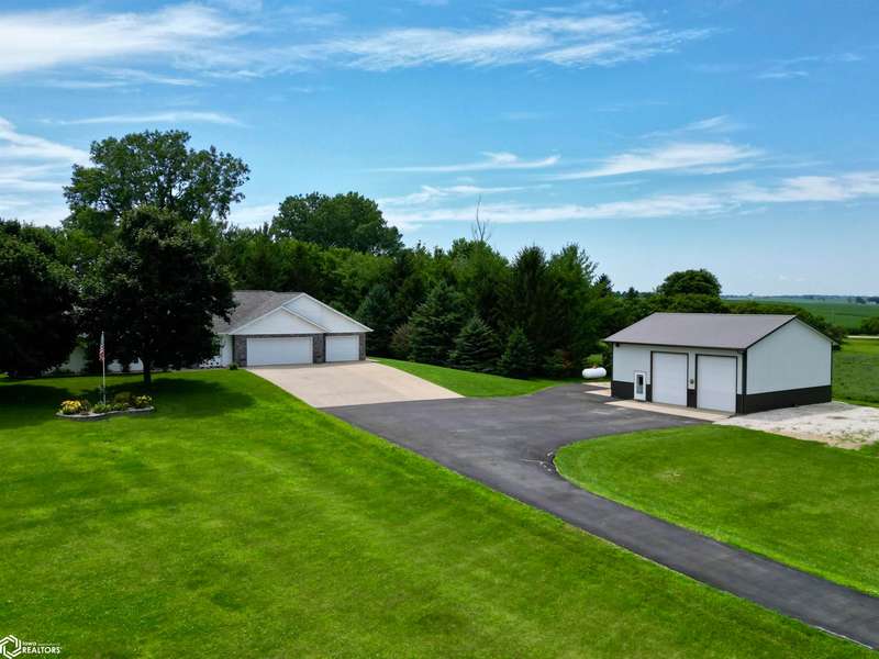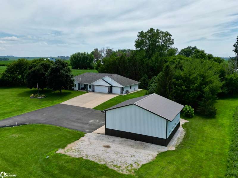 Discover this beautiful ranch-style home featuring 2 to 3 bedrooms, custom kitchen cabinets, and 9-foot ceilings throughout. Enjoy the natural light pouring in through Andersen windows, offering energy efficiency and elegance. A detached shop provides ample space for hobbies, storage, or a small business. This home blends comfort, functionality, and quality finishesperfect for anyone seeking both convenience and craftsmanship. Energy is supplied by Geo-thermal for efficiency as floors are heated in home, garage AND the shop. Shop also boasts 10 X 12 doors, half bath, floor drain and a mezzanine for storage. Attached garage is also heated, has a storm shelter and beautiful epoxy floor. The home features zero entry, two fireplaces, two laundry areas and a wonderful sunroom. You don't have to build it when you can buy it in near new condition.