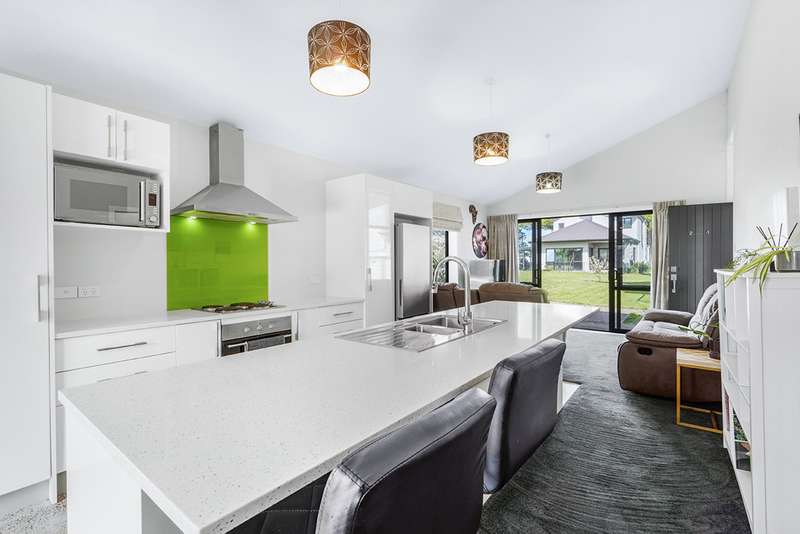 Designed for effortless living, this beautifully crafted residence features high ceilings and a thoughtfully laid-out open-plan kitchen, dining, and living area, offering a seamless indoor-outdoor flow. A heat pump and double-glazed windows throughout ensures you are well set up for both summer and winter. Step outside to a charming deck, ideal for entertaining or simply unwinding in the fresh air. Offering affordable modern living, this home is perfect for first-time buyers, savvy investors, or retirees seeking a low-maintenance lifestyle.