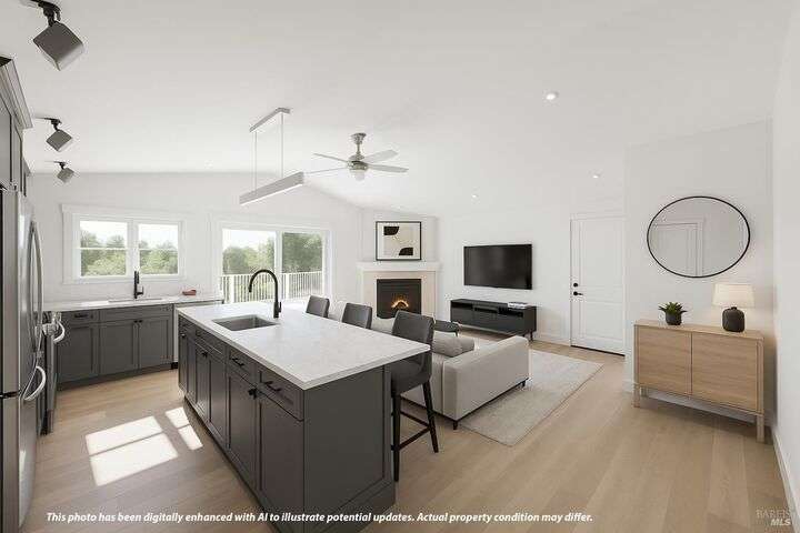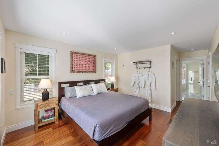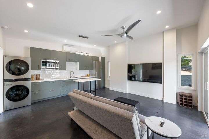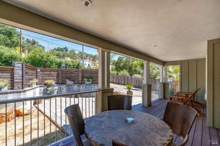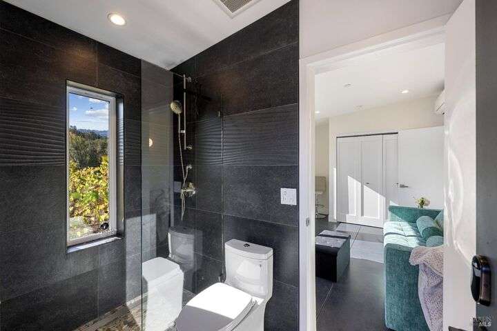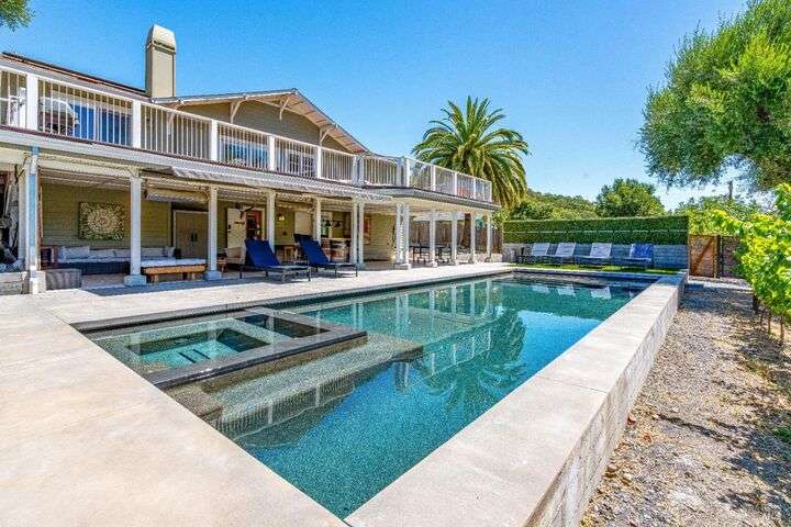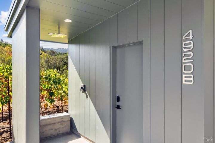 Gated Glen Ellen retreat on .69 acre with sweeping Sonoma Mountain views. With 2,137 sq. ft. of living space the main home offers 3bd/2ba, hardwood floors, updated baths, and expansive decks. A new 1bd/1ba ADU includes Miele appliances and laundry. Grounds feature a pool, outdoor shower, drought-tolerant gardens, a 60-vine Grenache vineyard with path to the creek, plus solar, a large shop and space in the basement. Property is on public utilities. Downtown Glen Ellen, ~1 hour to San Francisco.