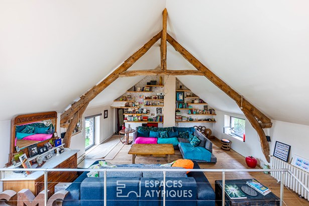 Located in Juziers, a charming village in the Vexin on the slopes of the Seine, this former 18th century farmhouse, divided and renovated, offers a warm setting of nearly 190 sqm with heart-stopping volumes.