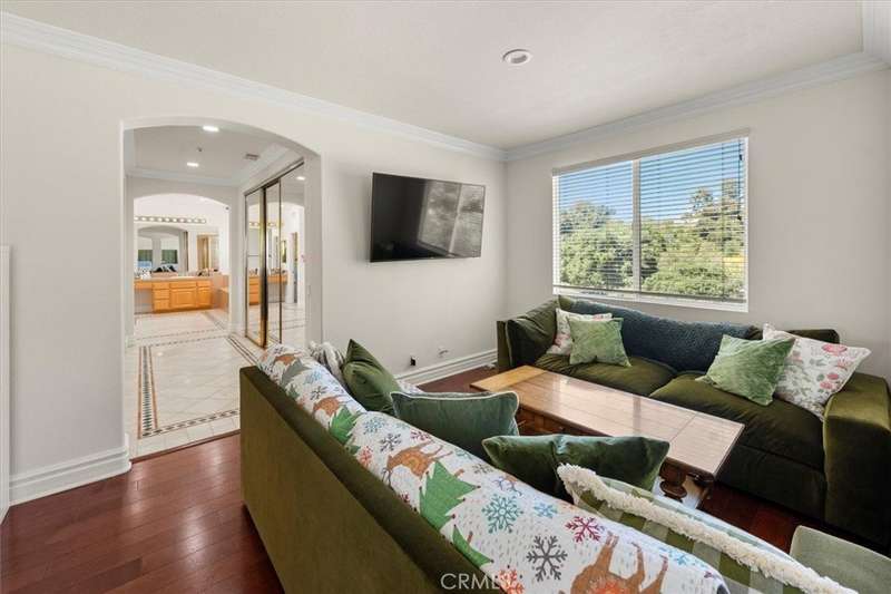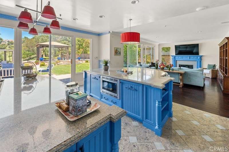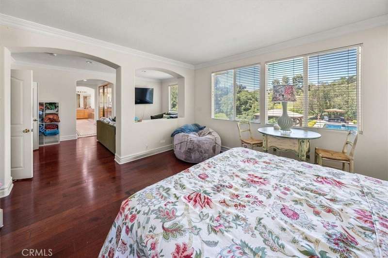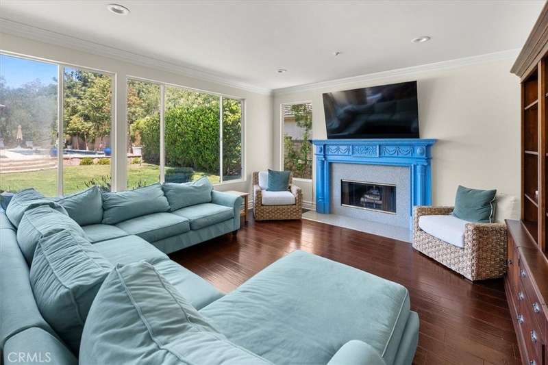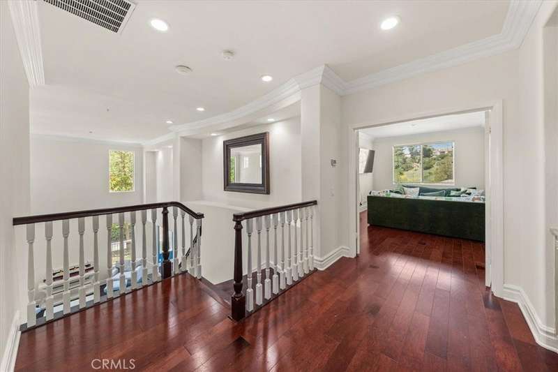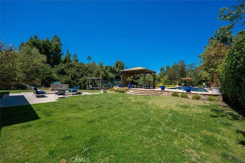 INCREDIBLE VALUE! Tucked away within the prestigious guard-gated enclave of Summit Point Estates, this exquisite five-bedroom, four-and-a-half-bath residence offers the perfect blend of timeless elegance and modern luxury. Situated at the end of a peaceful cul-de-sac, the home welcomes you with a stately double-door entrance that opens to soaring 30-foot ceilings and a bright, thoughtfully designed floor plan ideal for both refined entertaining and everyday living. The grand formal living and dining rooms exude sophistication, seamlessly flowing into a chef's dream kitchen—beautifully appointed with dual center islands, top-of-the-line Thermador appliances, and an abundance of custom French country cabinetry. The adjacent family room, anchored by a cozy gas fireplace, offers a warm and inviting ambiance, while the charming breakfast island provides the perfect spot for casual dining. A well-appointed guest suite with a private bath completes the main level, ideal for visiting family or friends. Upstairs, the expansive primary retreat features a serene sitting area, dual walk-in closets, and a luxurious en-suite bath with double vanities, soaking tub, and separate shower. Three additional bedrooms—two sharing a Jack-and-Jill bath and one with a private en-suite—provide ample space for family or guests. Walls of glass open to the resort-inspired backyard, where lush landscaping surrounds a sparkling pool and spa, expansive lawn, and covered patio—offering an idyllic setting for entertaining or tranquil relaxation. A finished four-car garage, complete with a 220-volt EV charger, adds to the home's exceptional amenities. Located in the scenic Santa Monica Mountains, just minutes from hiking trails, premier shopping and dining at The Village, and the iconic beaches of Malibu—this is California living at its finest.
