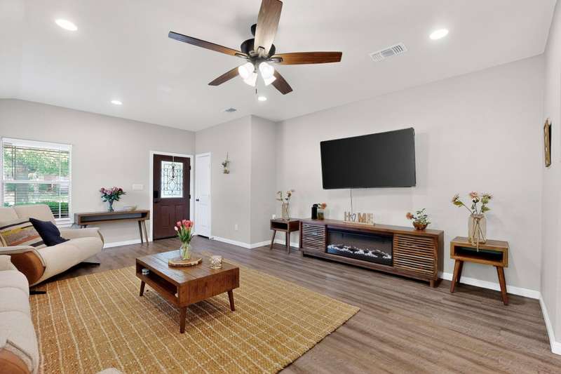 Pre-Foreclosure!!! Catch up and take over payments! $20,000 to catch up payments and get out of pre-forclosure stage. Monthly payments are $3200/month. Interest rate is 9.875%. Buyer will be responsible for agent commmissions and all closing costs. Fully Renovated & Move-In Ready! Welcome to 129 Salado Dr — a beautifully updated 3-bedroom, 2-bath home in the highly desirable Silverado at Plum Creek community in Kyle, TX. This charming single-story home blends modern style with everyday comfort and offers a bright, open layout ideal for families, first-time buyers, or anyone seeking a turnkey home. Step into an inviting living space with updated light fixtures, fresh interior paint, and luxury vinyl plank flooring in the main living areas. The kitchen has been fully renovated and features granite countertops, stainless steel appliances, modern cabinetry, and a timeless subway tile backsplash — all centered around a spacious breakfast bar, perfect for casual dining or entertaining. The private primary suite offers a peaceful retreat with a walk-in closet and a fully updated en-suite bath featuring a new vanity, contemporary tile, and updated fixtures. Both secondary bedrooms are comfortably sized and feature plush carpet for added comfort, making them perfect for kids, guests, or a home office. A second remodeled full bathroom serves these rooms. Enjoy evenings in the spacious backyard with a covered patio and plenty of room for entertaining, gardening, or play. Additional updates include a newer roof, HVAC system, and a freshly painted two-car garage. Residents enjoy access to community amenities like a pool, playground, and walking trails — all just minutes from schools, parks, shopping, and restaurants, with easy access to I-35. Modern finishes, granite counters, and move-in-ready comfort — this home has it all! Schedule your showing today.