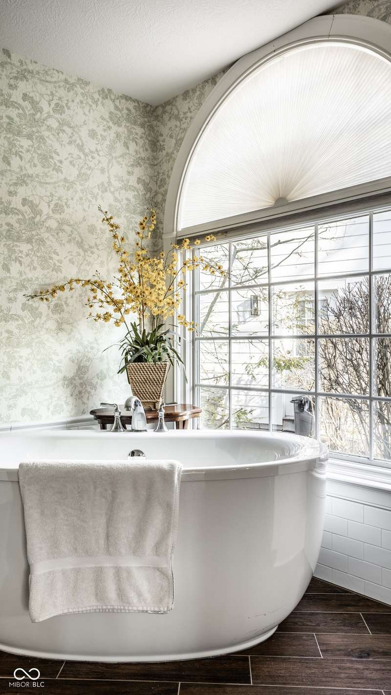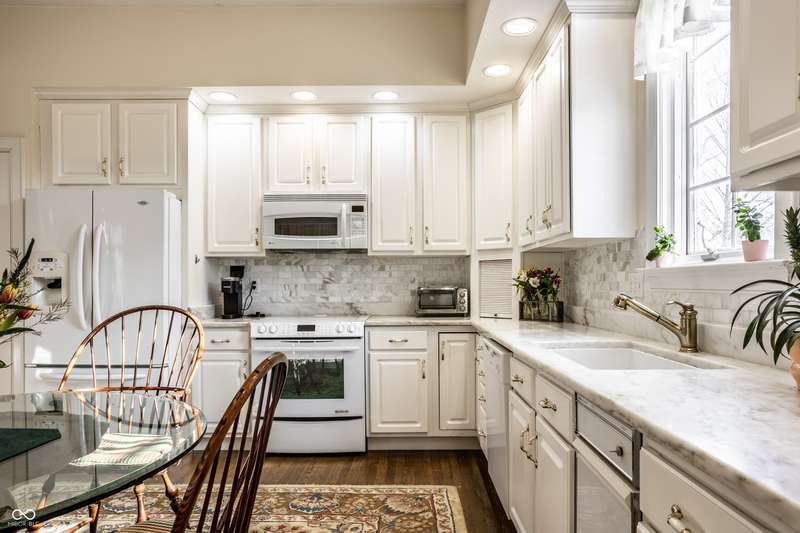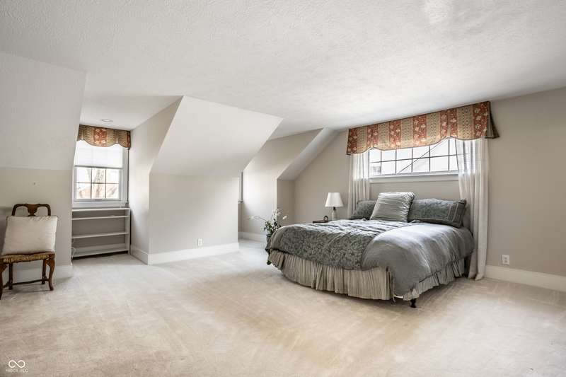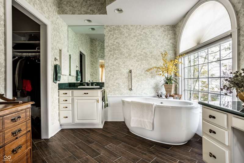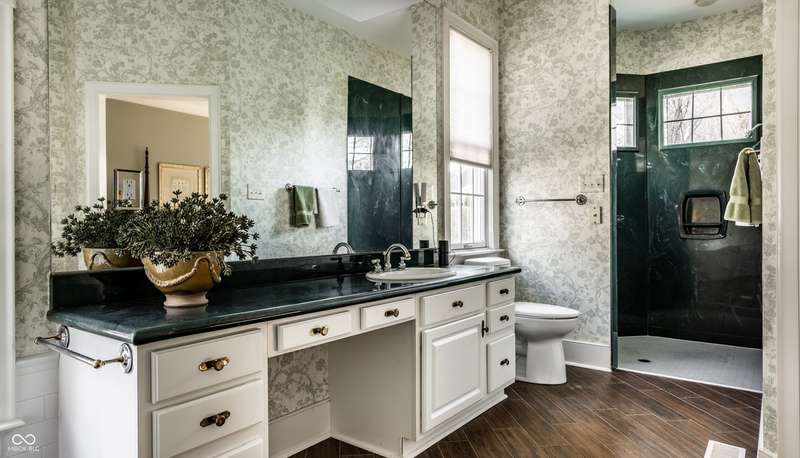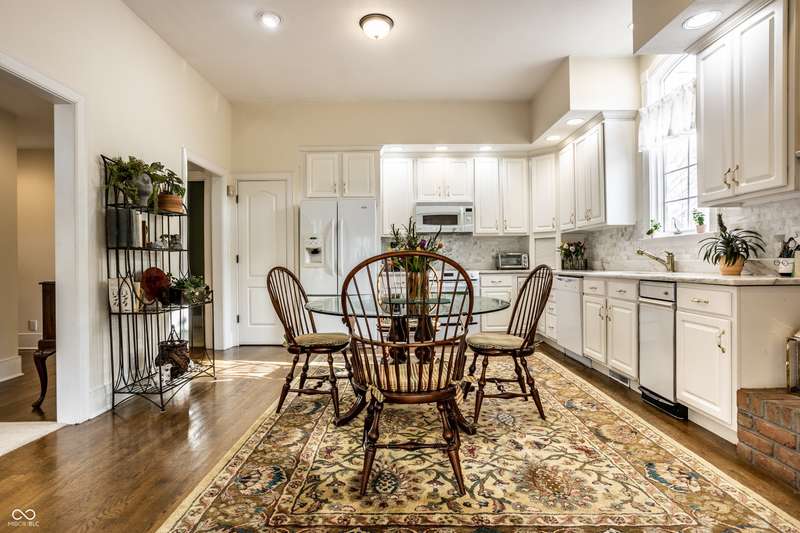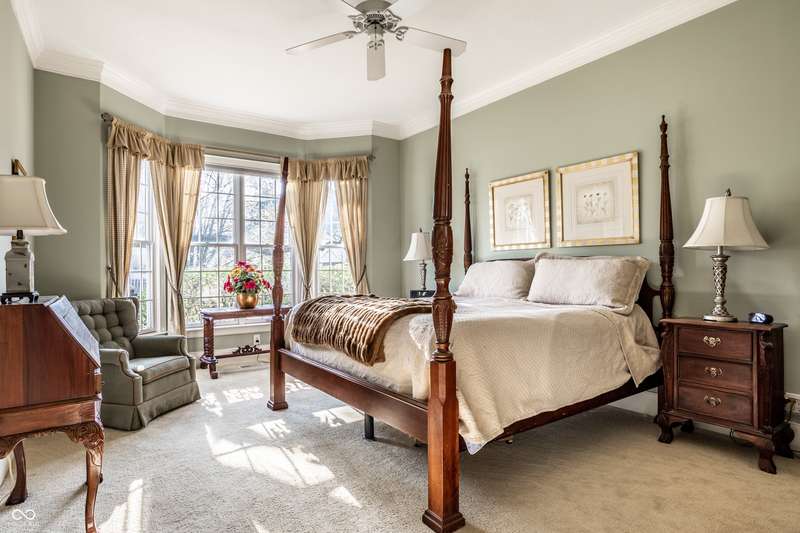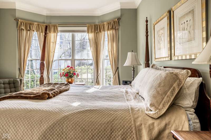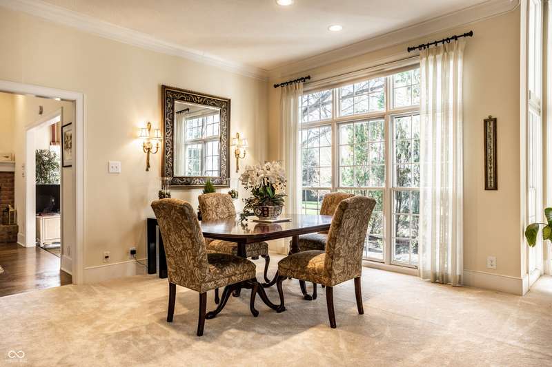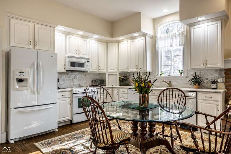 Tucked behind the gates of the sought-after Sycamore Springs community, 8037 Lynch Lane offers a blend of charm, comfort and low-maintenance living in one of Indianapolis' most desirable neighborhoods. Bathed in natural light, this freshly painted residence welcomes you with a grand two-story great room, where nearly floor-to-ceiling windows frame serene views and allow sunlight to pour in throughout the day. The inviting eat-in kitchen, complete with a cozy fireplace-is the ideal setting for casual meals or evening conversation. Just off the kitchen, an inviting sunroom provides the perfect space for your morning coffee or quiet afternoon reading. The main floor primary bedroom offers a spacious retreat with a large walk-in closet and en-suite bathroom, including dual sinks, walk-in shower and a garden tub. The home library/den with built-in bookshelves and a second fireplace adds a cozy, versatile space that could be used as an additional bedroom with a closet. Upstairs, you'll find a private guest suite with its own full bath, ideal for friends and family. Step outside to the quaint backyard with a large patio area- ideal for entertaining or enjoying peaceful evenings at home. Siding recently replaced with Hardie plank. Residents of Sycamore Springs enjoy access to exclusive amenities including a clubhouse, pool, and fitness center, all just minutes from the luxury shopping and dining of Keystone at the Crossing. Assumable mortgage option.