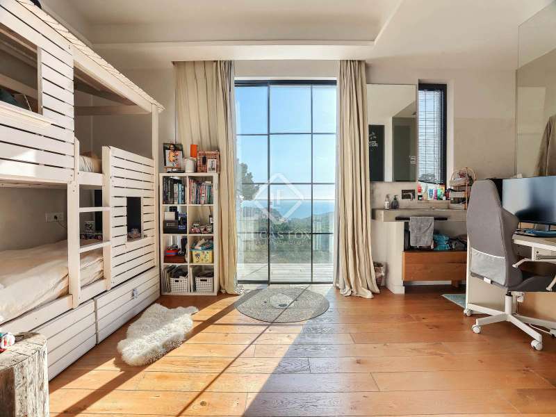 Perched gracefully on the scenic hills of Genova, Mallorca, this modern villa presents a blend of elegance and tranquility. With a generous living area of approximately 273 m², this residence offers stunning panoramic sea views. The main house boasts a spacious, open-concept design that seamlessly connects indoor and outdoor living. Large floor-to-ceiling windows flood the interior with natural light, emphasizing the clean lines and minimalist aesthetics that define the home's architecture. The heart of the property is an expansive living room, which flows into a kitchen equipped with high-end appliances.. This exquisite property includes four elegantly appointed bedrooms, each thoughtfully designed with ample storage and en-suite bathrooms, ensuring the utmost comfort and privacy. Beyond the main living quarters, a charming guest house provides a private retreat for visitors, complete with its own living area and bedroom, making it ideal for hosting family or friends. Outdoors, several expansive terraces surround the property, offering a variety of spaces for relaxation and dining al fresco. The centerpiece is an infinity pool, creating a serene oasis where one can unwind while taking in the magnificent coastal vistas. With its modern architecture, premium amenities, and unparalleled sea views, this villa is more than just a home—it's a sanctuary where contemporary design meets the timeless beauty of the Mediterranean landscape.