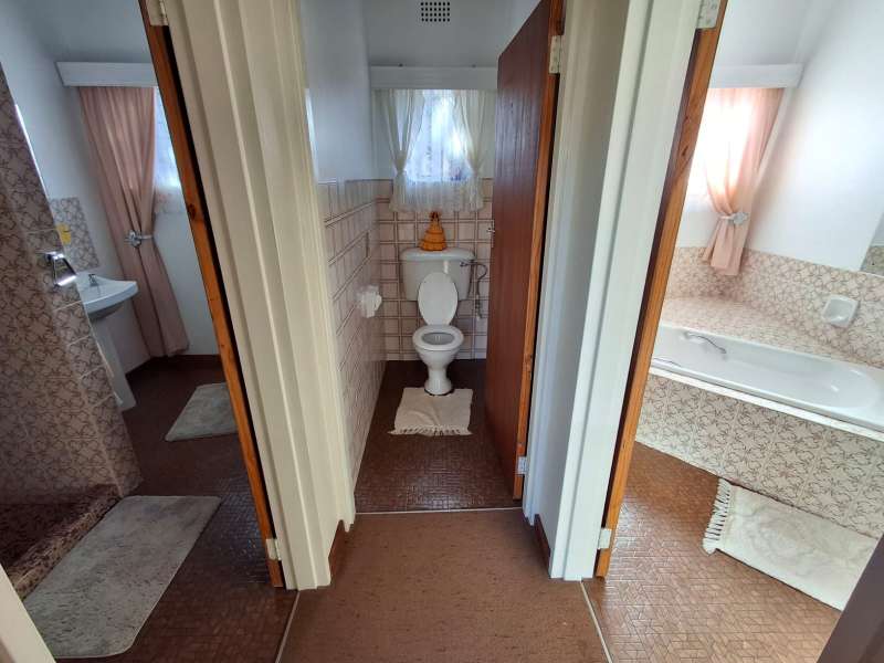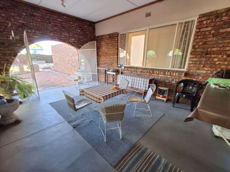 This well-maintained 4-bedroom, 3-bathroom family home offers comfortable living with a focus on space, versatility, and entertainment. All bedrooms come with built-in cupboards, while the main bedroom boasts an en-suite bathroom and air conditioning. The home features a spacious lounge, dining room, and additional living area with sliding doors opening to the outdoors. The kitchen includes a scullery and laundry area. An under-roof patio leads to the swimming pool and braai area. A versatile upstairs room offers the option of a 4th bedroom, home office, or study. Additional features include domestic accommodation, a double garage, and a carport that fits up to four vehicles. The property is equipped with an automated irrigation system, a 2400-liter water tank, and solar lights that enhance security. Security gates and doors add to the overall peace of mind. This home is ready to welcome its next family.