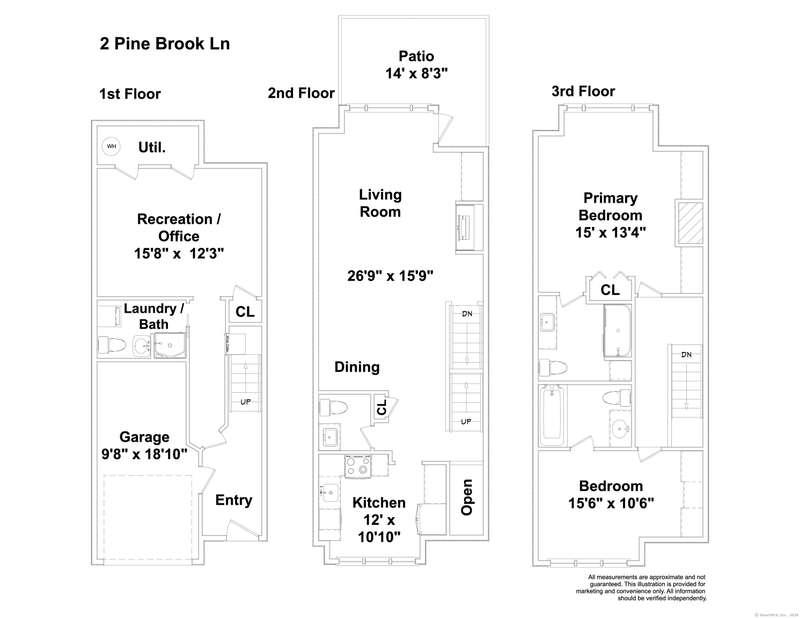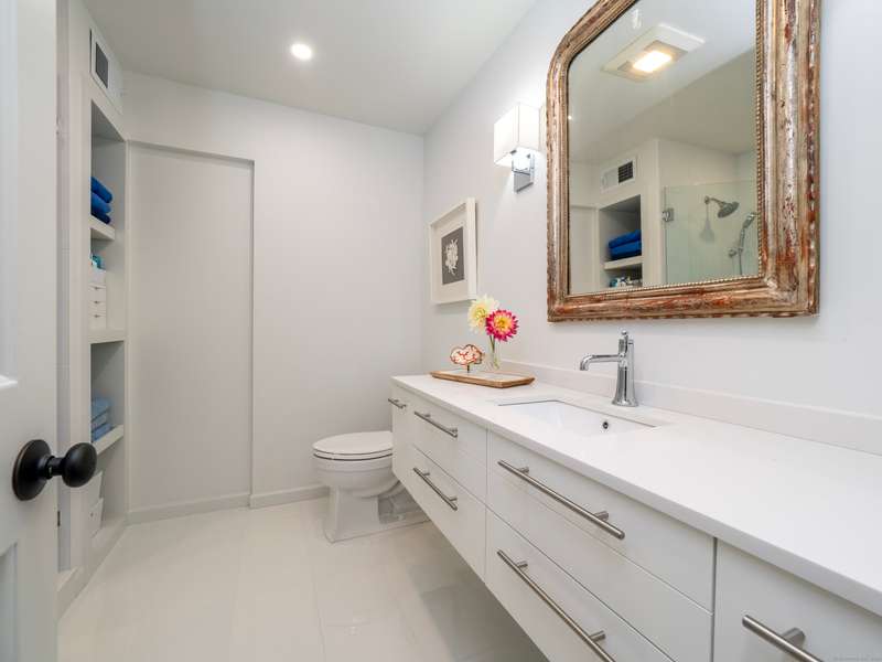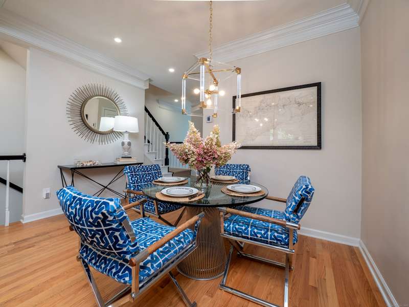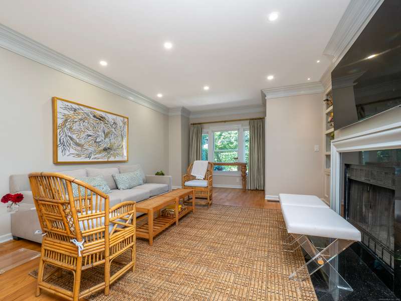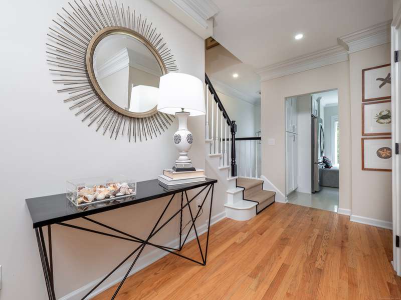 Don't miss this stunning, newly updated 2 bedroom, 3 full, 1 half bath townhouse in Darien's desirable Pine Brook complex.This well-maintained unit is ideally located within walking distance to Darien's train station, downtown shops and restaurants. As you enter the lower level, abundant light fills the 2 story foyer. A Rec room/office with new FULL bath and laundry provide versatile living possibilities to suit any needs. An oversized one car attached garage provides nice storage. Enjoy the first floor's open floor plan, high ceilings, powder room, hardwood floors and working fireplace. Generous crown moulding and hardwood floors throughout give a sophisticated look to this living space. Easy access to the private patio out the living room is perfect for afternoon sun or quiet meal. Morning sun fills the updated eat-in kitchen while new appliances, quartz counter tops and new cabinets make this kitchen a dream to cook in. Upstairs you'll find a generous primary suite with vaulted ceil