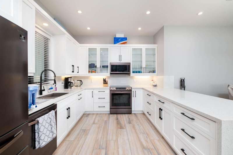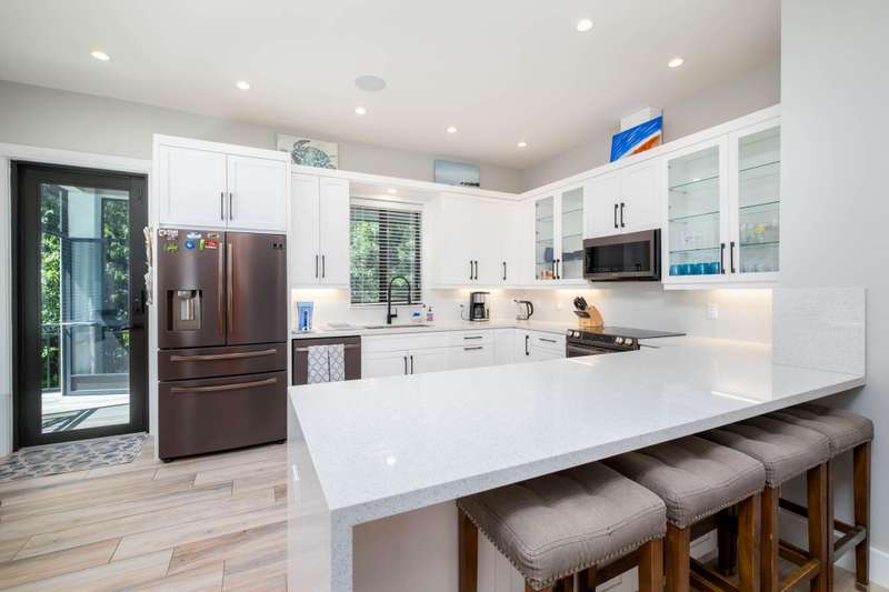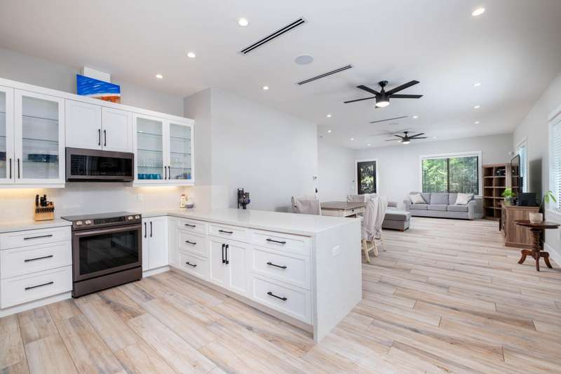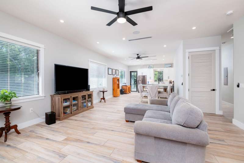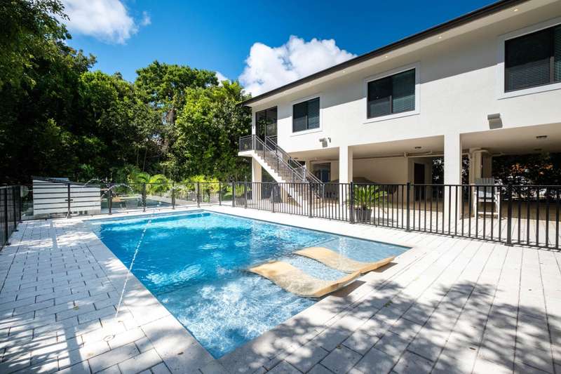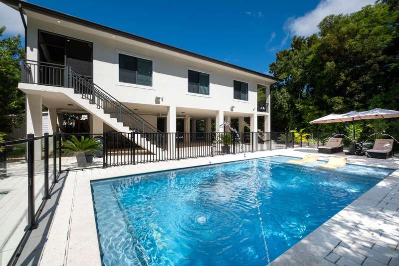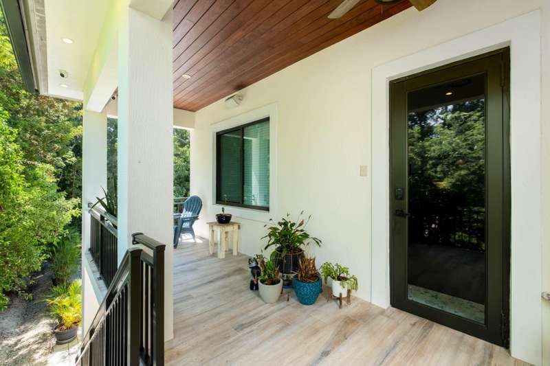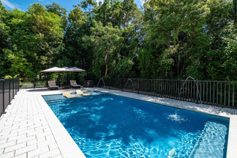 Custom modern 3/2 newer CBS home built in 2019 on oversized 15,000+ sq ft lot. This home has a great layout, with porcelain tile thru out, waterfall quartz countertop, all stainless steel appliances. lots of storage. The 15 x 30 pool has a diamond bright finish, with waterfall feature, surrounded by conservation easement, feeling like your in your own private oasis. 2 sets of exterior stairs each with a wide porch. Rear porch is screened. Twin Lakes has a boat ramp for smaller boats; no more than a 24-26 ft.