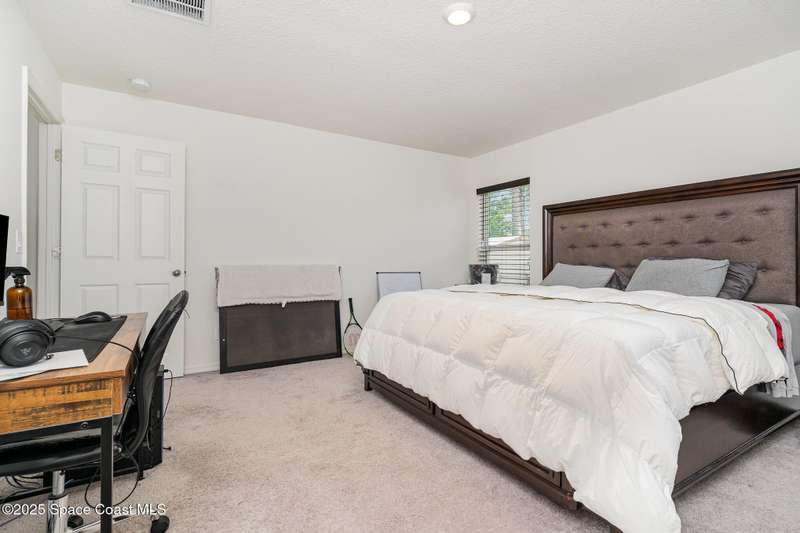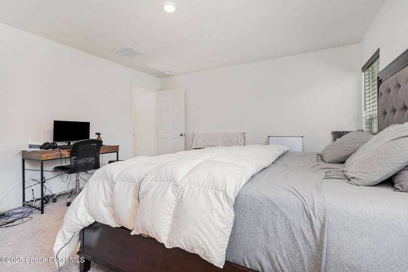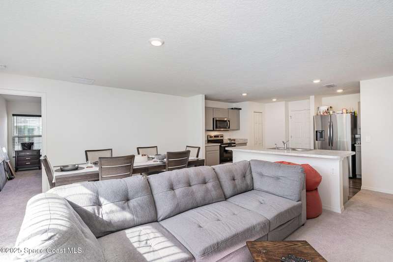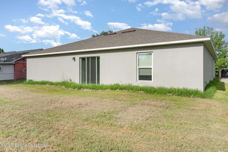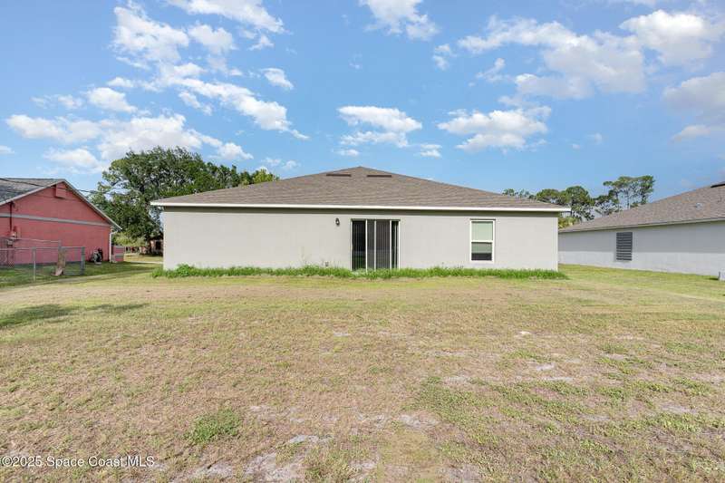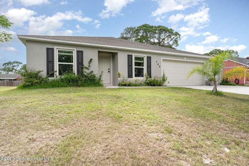 Step into modern comfort with this 2023-built 4 bedroom, 2 bath Holiday Builders home in Palm Bay, FL. Designed with a desirable split floor plan, this home offers privacy and functionality for families or guests. Enjoy spacious living with an open-concept layout, sleek finishes, and abundant natural light throughout. The heart of the home features a well-appointed kitchen overlooking the living and dining areas, ideal for entertaining or everyday life. The primary suite includes a walk-in closet and en-suite bath for a private retreat. Three additional bedrooms provide flexibility for an office, gym, or growing household. The 3-car garage offers plenty of storage for vehicles, toys, or tools. With no HOA, you'll have the freedom to make it truly your own. Conveniently located near shopping, dining, and I-95 access, this home is move-in ready and waiting for you. Discover comfort, convenience, and quality construction all in one!